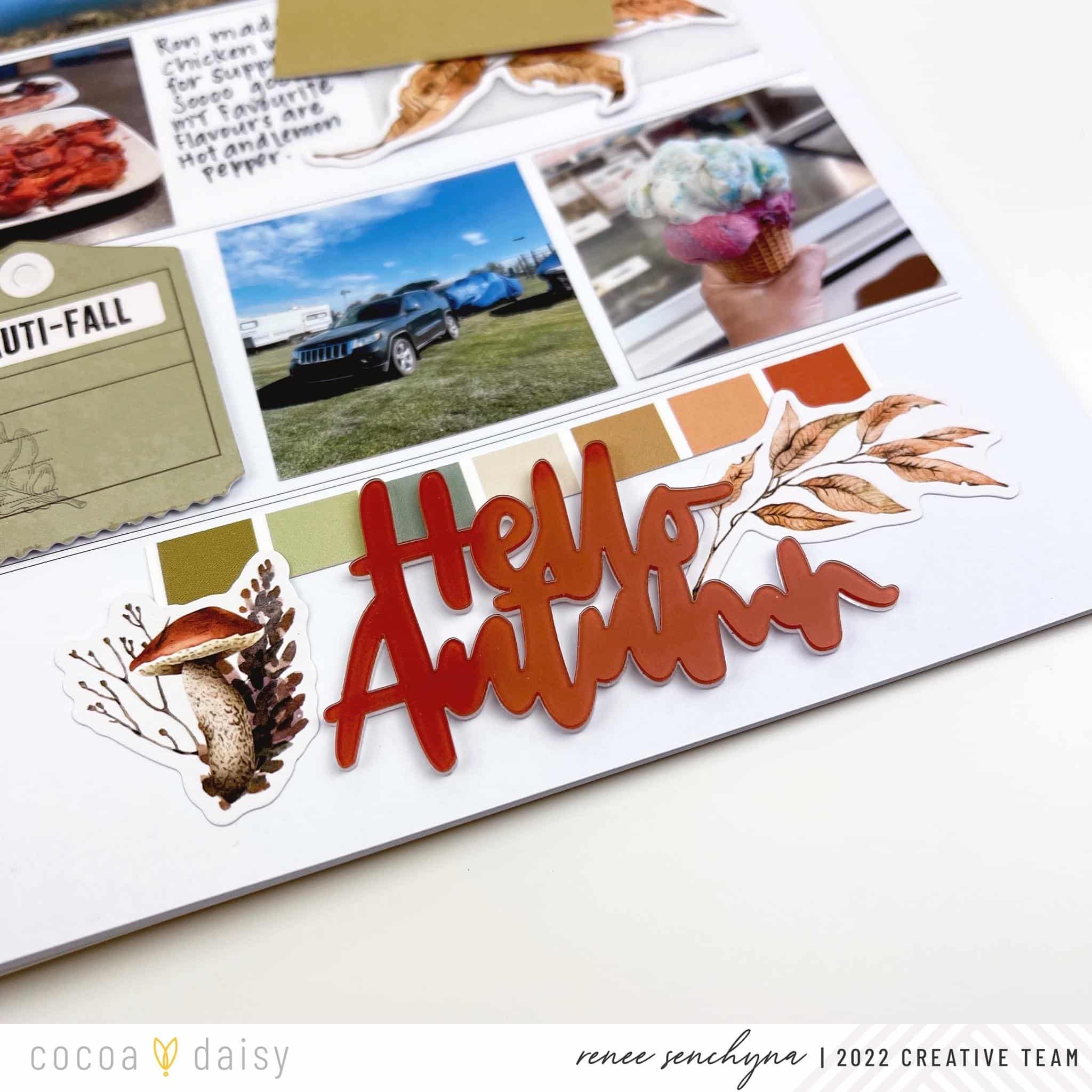 As a final touch, I included the acrylic ‘hello autumn’ from the Autumn Thicket Memory Keeping Sticker Kit.