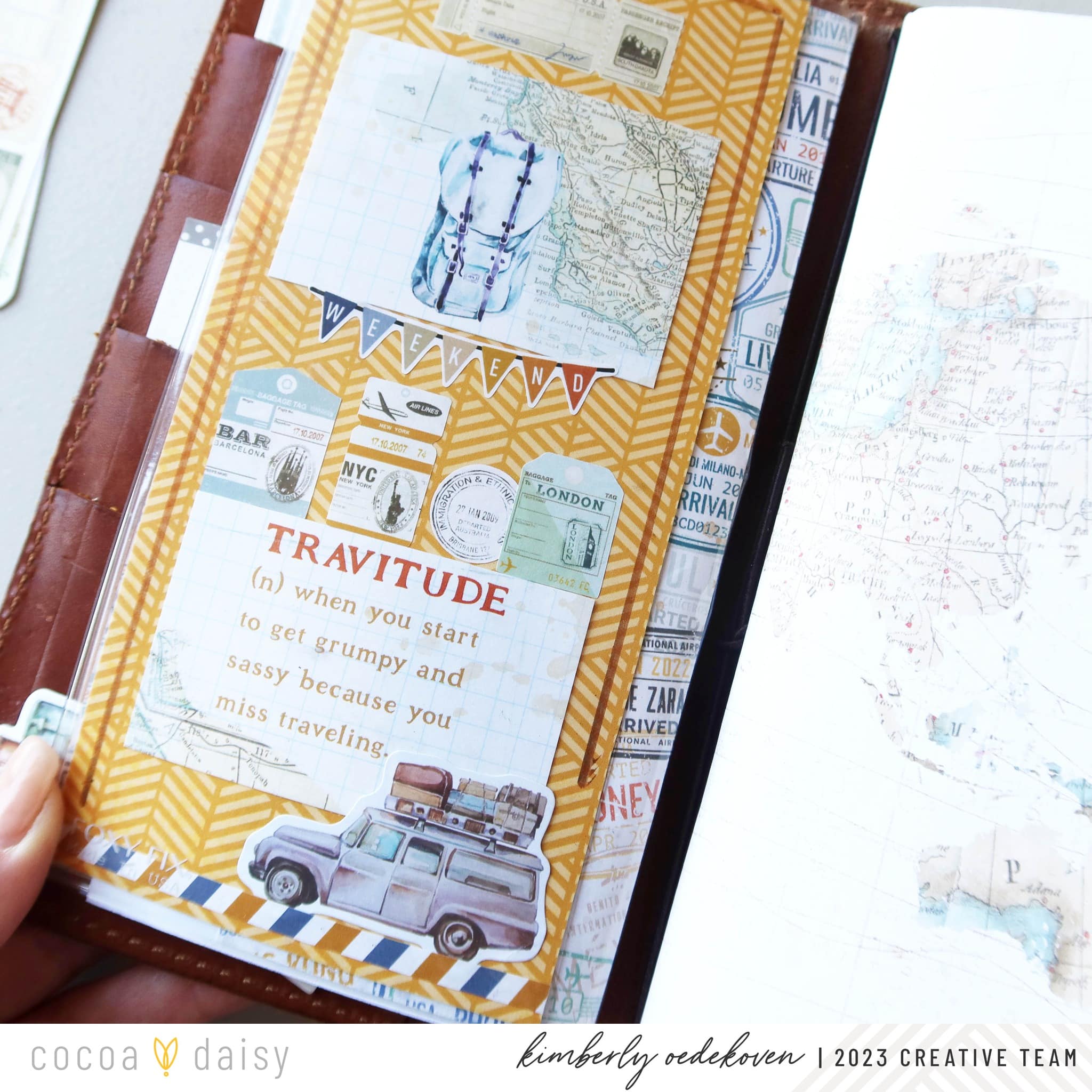 On the back side, I took the Travitude notecard from the Wander Planner Add-On Kit, sliced it, and placed some of those fantastic travel tag stickers to create a vignette. The adhesive-backed die cuts also make an appearance too. Love how handy it is to have them ready to place wherever they are needed.