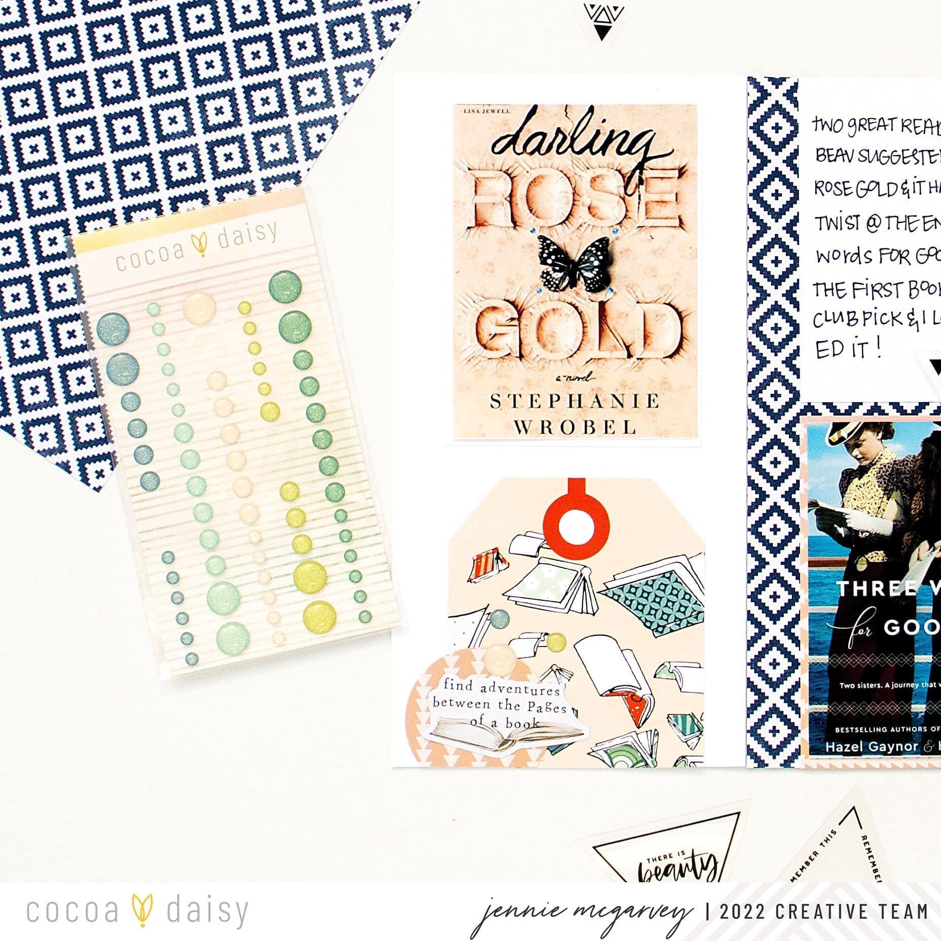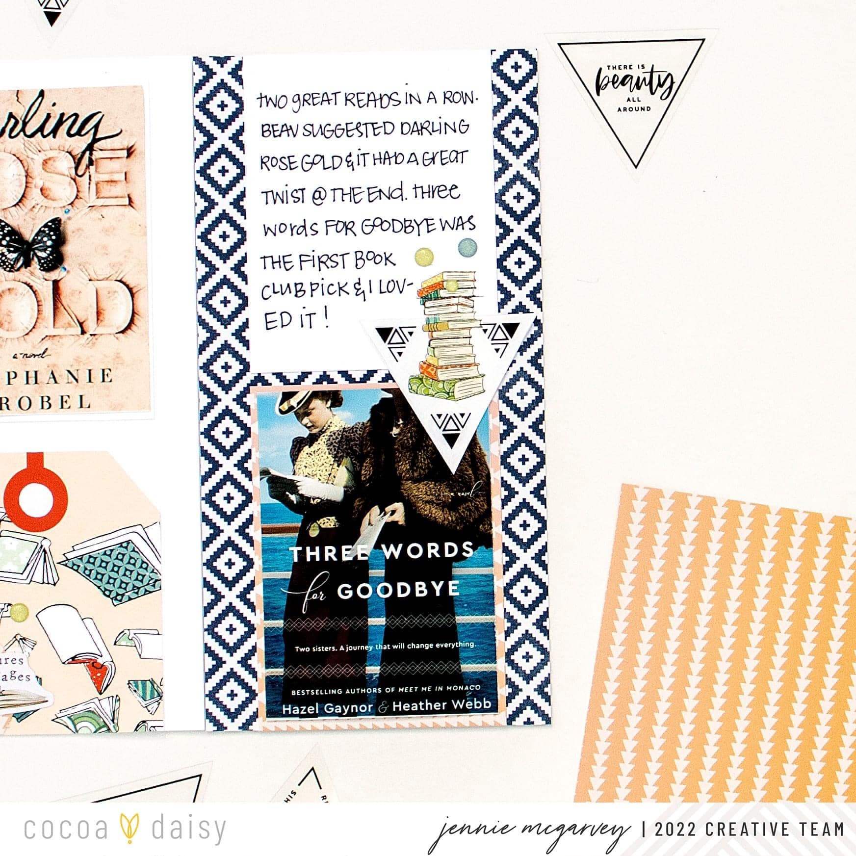My reading journal is a plain standard size traveler’s notebook insert. I have a lot of these in my stash AND I really love creating this size layout. So this seemed natural. For this layout, I used both the Cactus Moon Collection, but also mixed in some elements from the My Escape Collection, as well. They went together nicely I think. I kept this pretty simple beyond the photos of the covers and some documenting of my thoughts. Watch me work in this process video below.