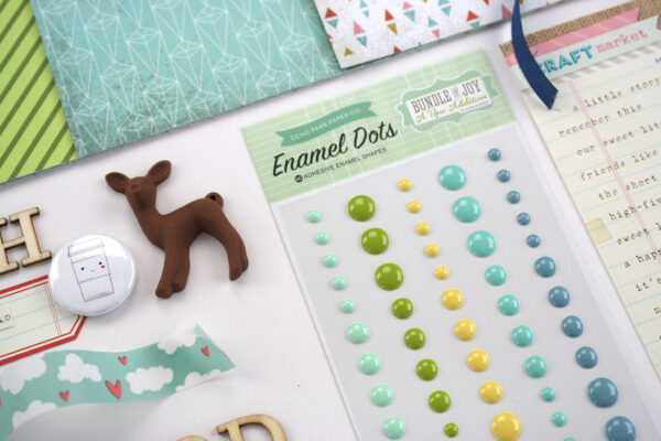 When I saw the cards for this month’s Day in the Life kit I knew they would make a perfect mini album. I didn’t have a specific event to scrap so I just chose a handful of photos from the month of January. It’s a great way to document a lot of everyday moments. The cards made for an easy color palette to work with, soft whites mixed with pops of color. And the Heidi Swapp wood handle stamp was so much fun!