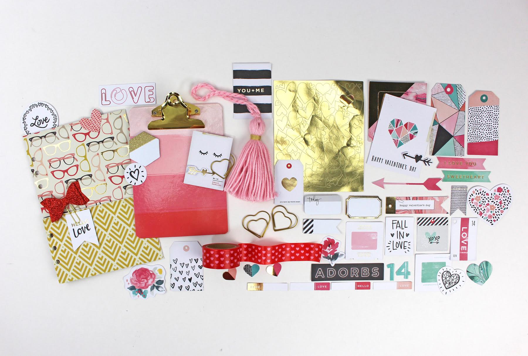 There was so much to choose from, and we do love a good love story, so we put together an extra add on this month. Our Valentine Add On has a tiny little clipboard, lots of die cuts from Crate Paper, a sheet of foil hearts, and three metal heart clips. We’ve also included a very popular tassel along with a roll of red washi tape. Our special Valentine Add On is going to give you plenty of decorating selection come February!