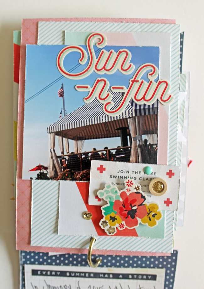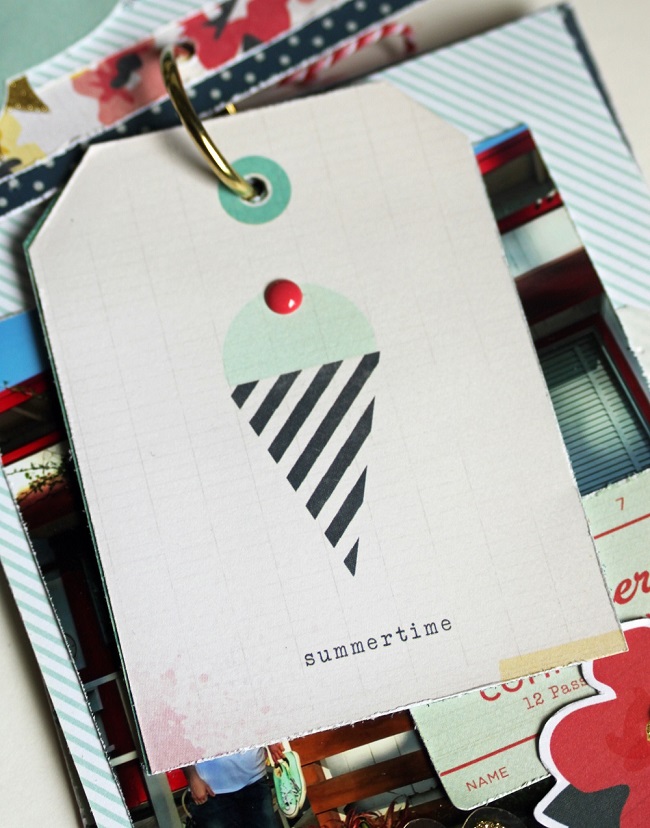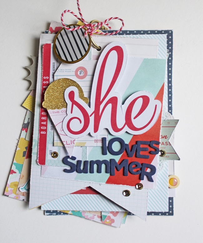 Today I have some amazing mini albums to show you! First up is a delicious little ring album I created called, “She Loves Summer!” There is something about chunky little mini albums that just make me happy! I love having them around the house just for people to sit and look at!  Here’s some bits~n~pieces;