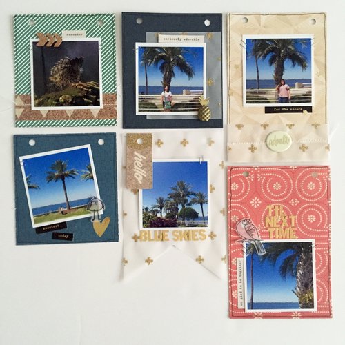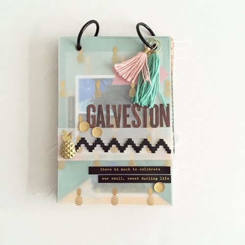 Even though I like to combine lots of different things in a mini book, I find that having a few elements repeated throughout add cohesion to the design. Working from a kit really helps make this process effortless.
