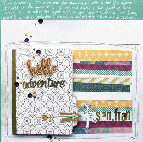 Ashli does something super creative and cute as usual. A mini book on a layout! Now, that is awesome. I love how she paired patterned paper strips with the Heidi Swapp journal. Such a good place for holding extra stories and pictures.