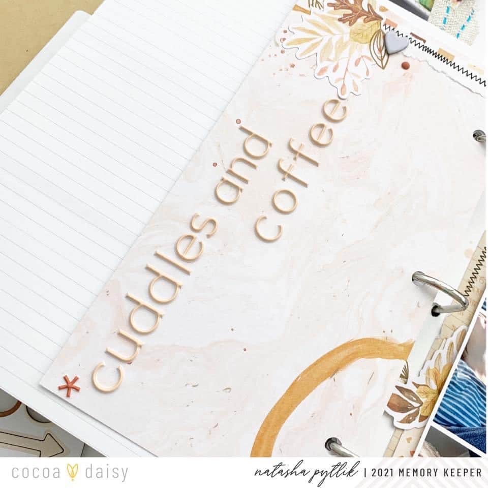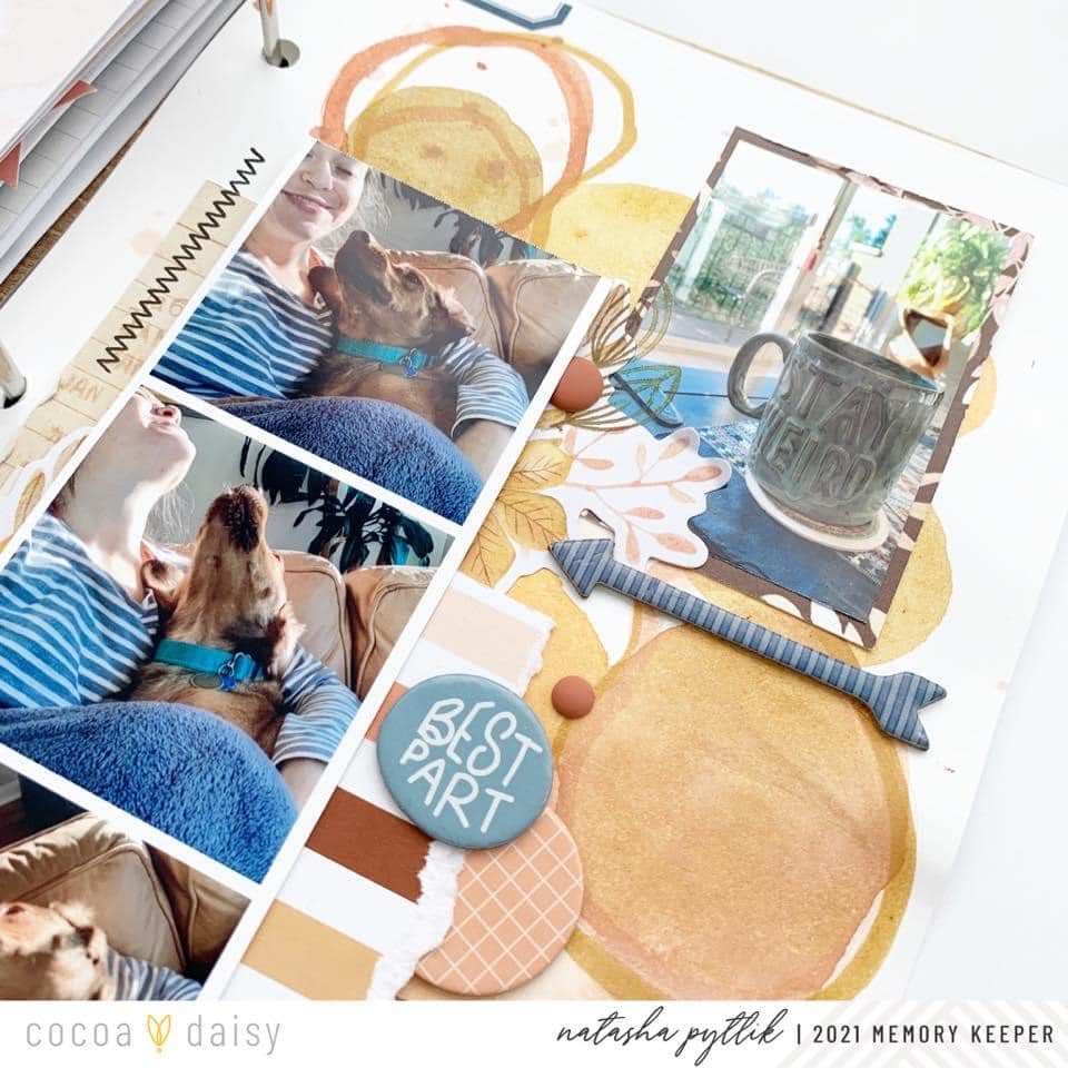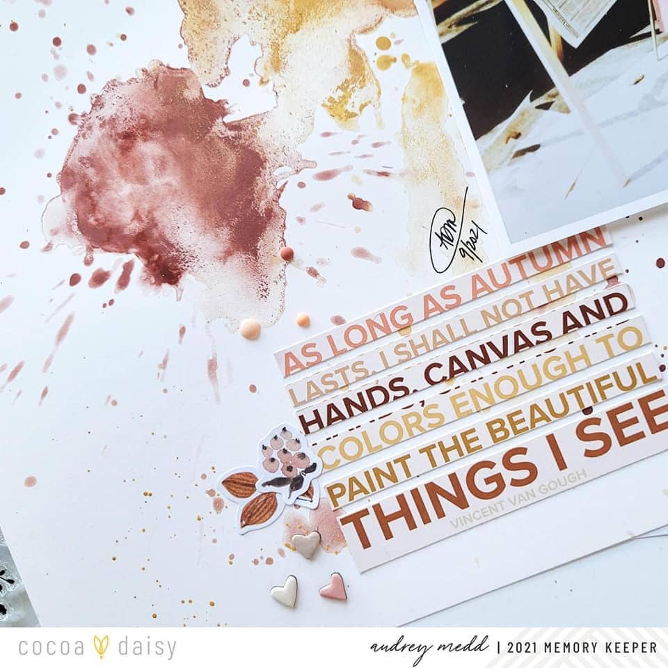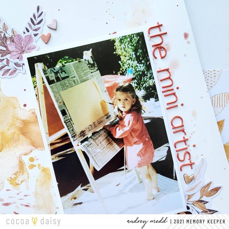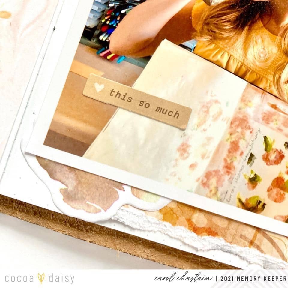 “One of my most favorite things about Cocoa Daisy Kits is the mixed media elements that are more often than not included in the collections! I know that I am not alone in this! Maybe like myself, it is one of the things that caught your eye when you first saw Cocoa Daisy products online. I am always very inspired to pull from these mixed media designs to develop my own mixed media creations for my memory-keeping layouts.