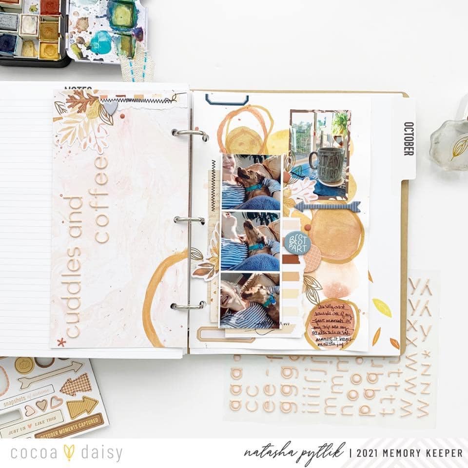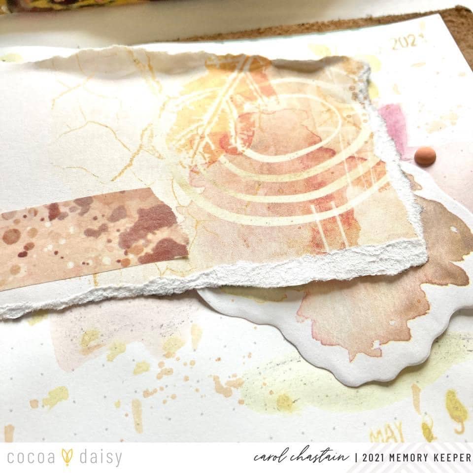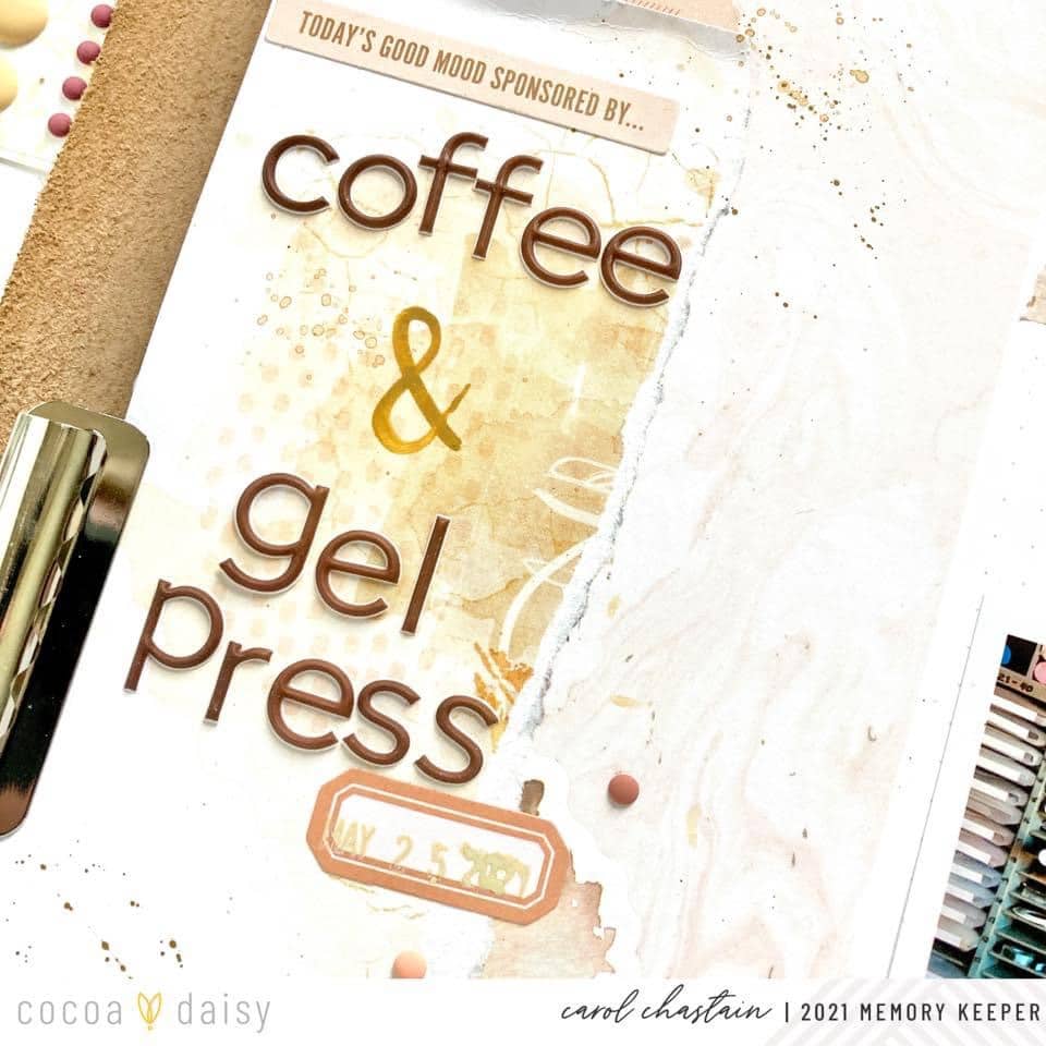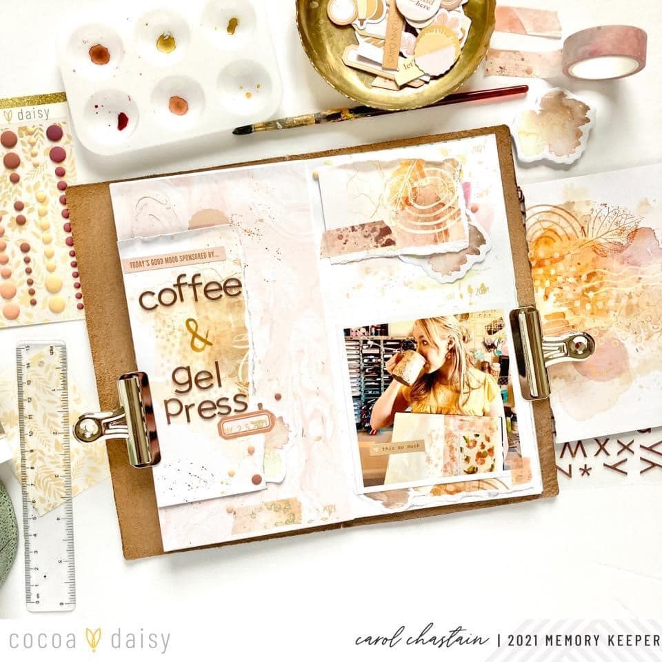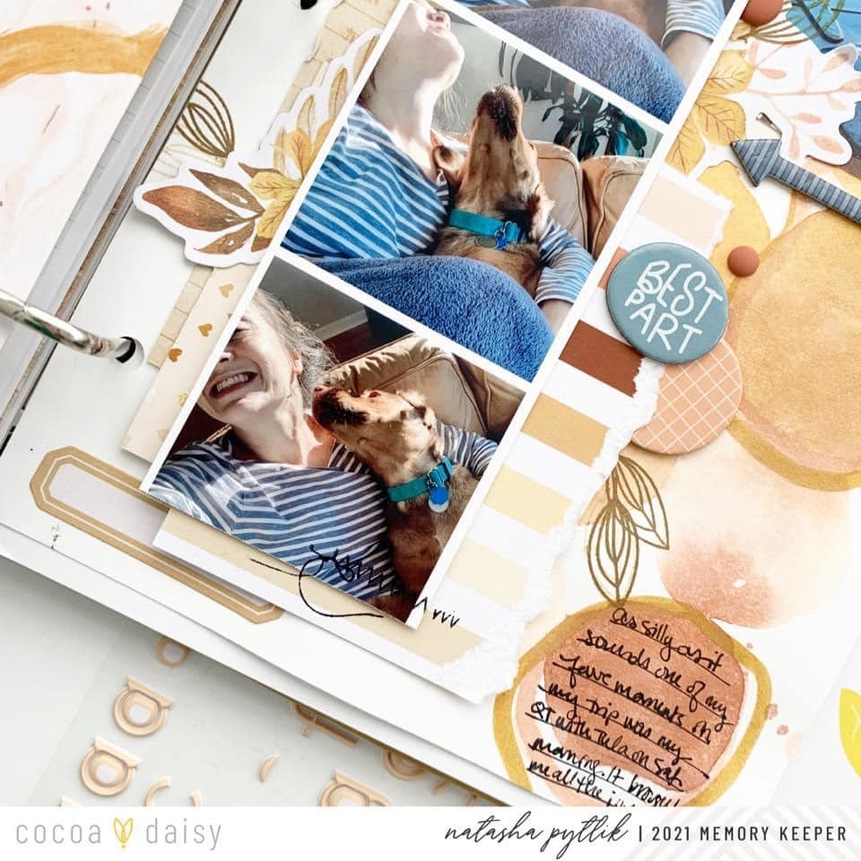 “One of my most favorite things about Cocoa Daisy Kits is the mixed media elements that are more often than not included in the collections! I know that I am not alone in this! Maybe like myself, it is one of the things that caught your eye when you first saw Cocoa Daisy products online. I am always very inspired to pull from these mixed media designs to develop my own mixed media creations for my memory-keeping layouts.