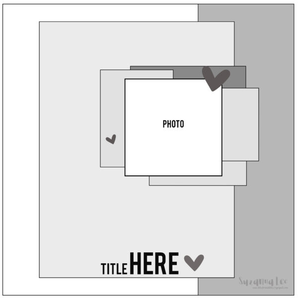 Another month means another sketch challenge and this time the sketch is brought to you by yours truly, Suzanna! When I create sketches, I tend to create them from past layouts. This sketch is based on a layout I shared recently. Bonus points to those of you who can tell me which layout it is based on!