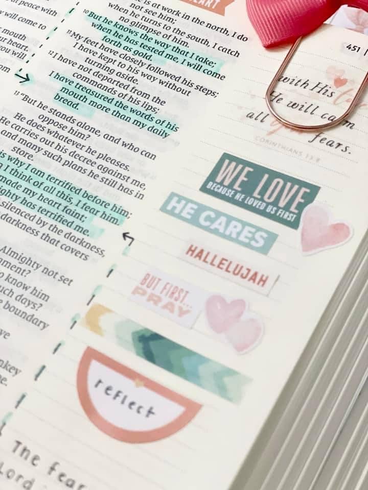 Setting up my journaling Bible for a month of studies is also easy-peasy with the Elegance Blooms Bible Journaling Sticker Kit. I love adding some decor to the pages in advance and leaving room for notes and reflection later.