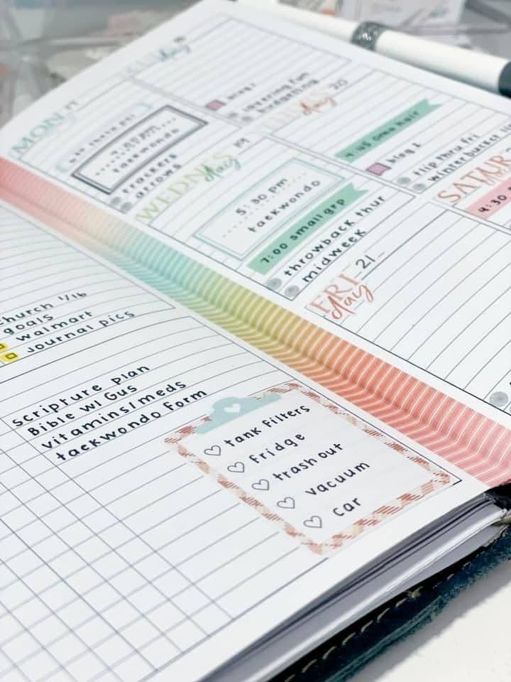Personal rings are the perfect size for me – plenty of space for appointments and to-do lists but not too large for carrying with me. I love the format of the Cocoa Daisy Personal Size Inserts. You can see the whole week on a two-page spread and there are extra places for notes, journaling, and to-dos!