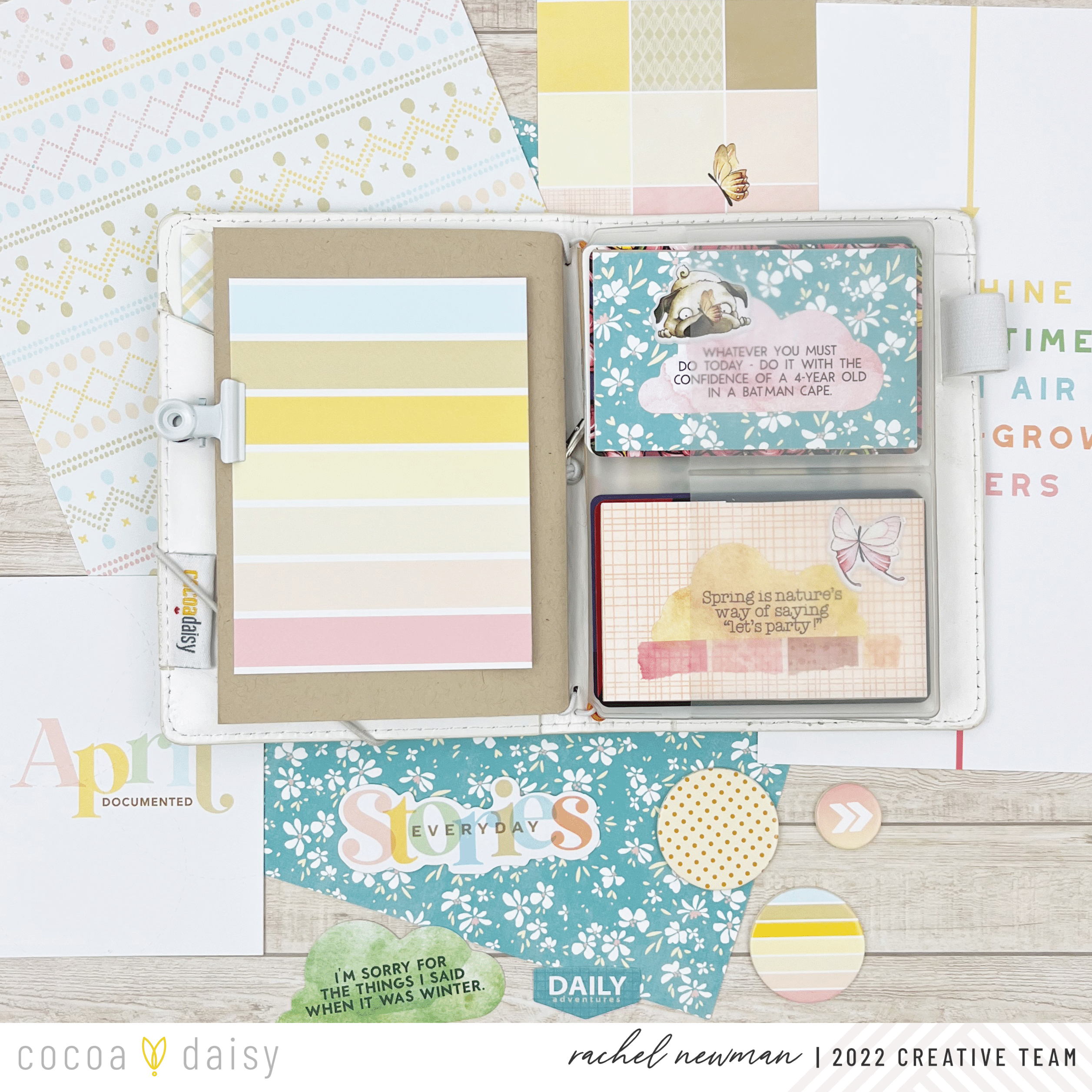 This size notebook is perfect for quick documenting. With just a photo, pocket card, a little journaling, and a few embellishments, you could have a spread done in a few minutes!