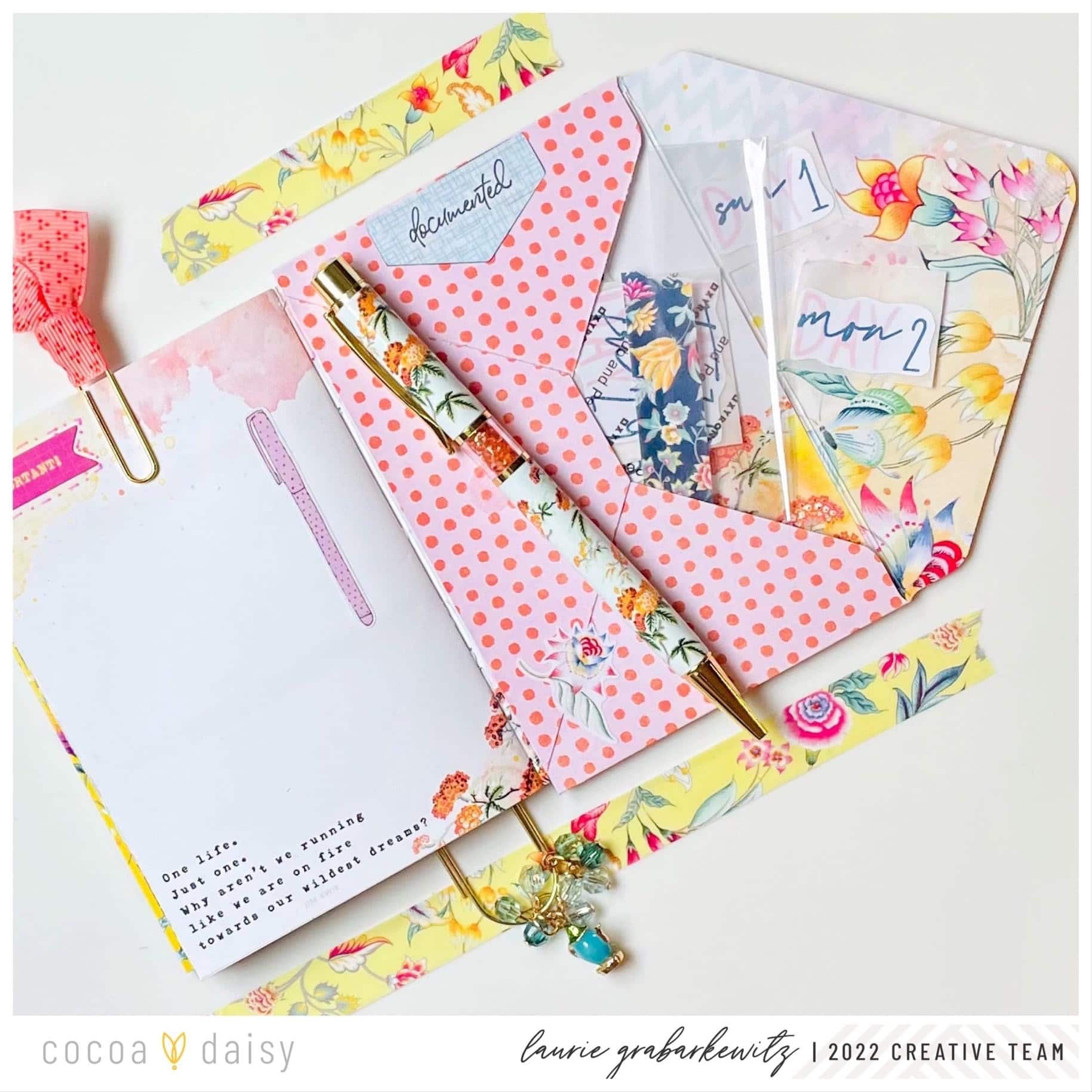 Here it is with all of the goodies stuffed inside. I attached a few of the super cute teapot sticky notes from the Afternoon Tea Planner Kit to the side pocket.