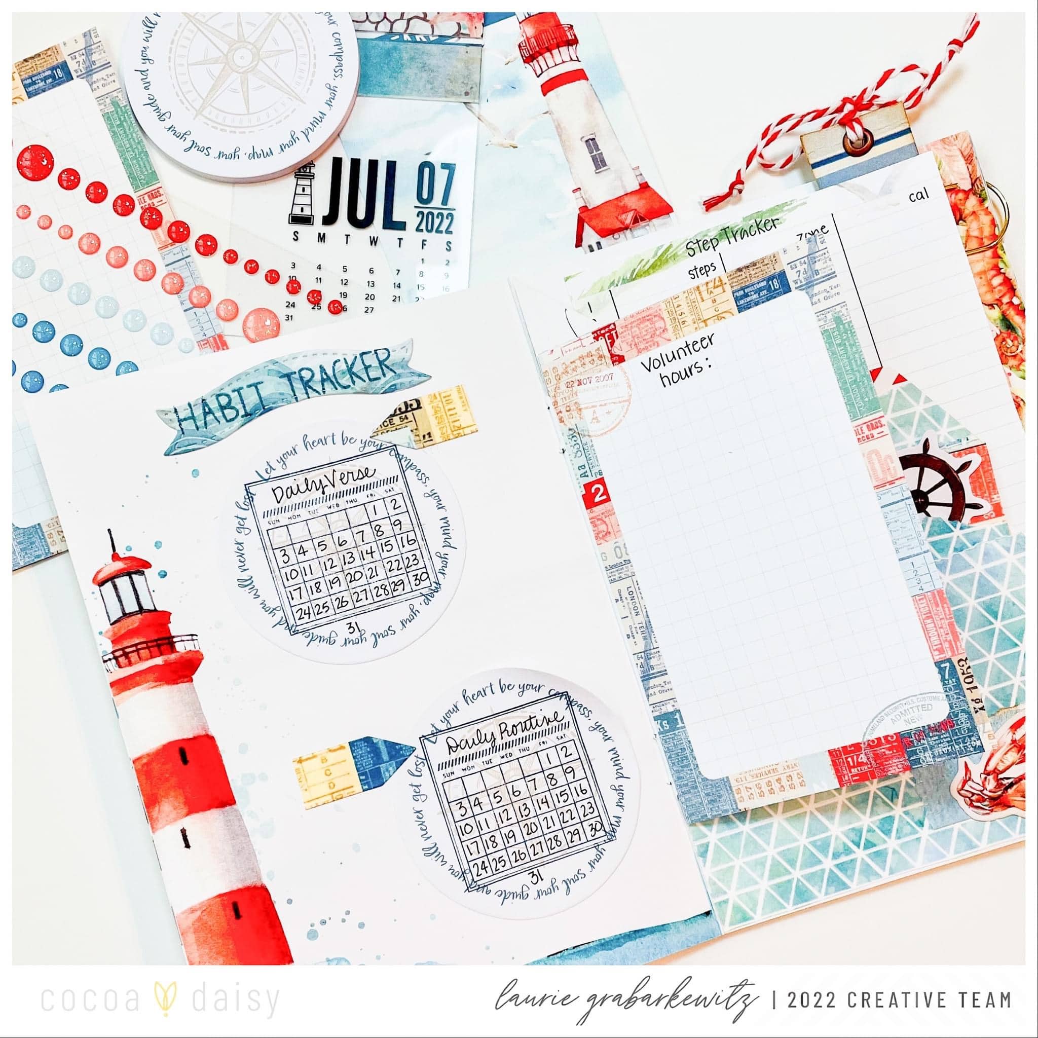 Setting up my traveler’s notebook for on-the-go planning is my favorite thing to do each month because all of the Cocoa Daisy kits arrive with just what I need and everything coordinates!