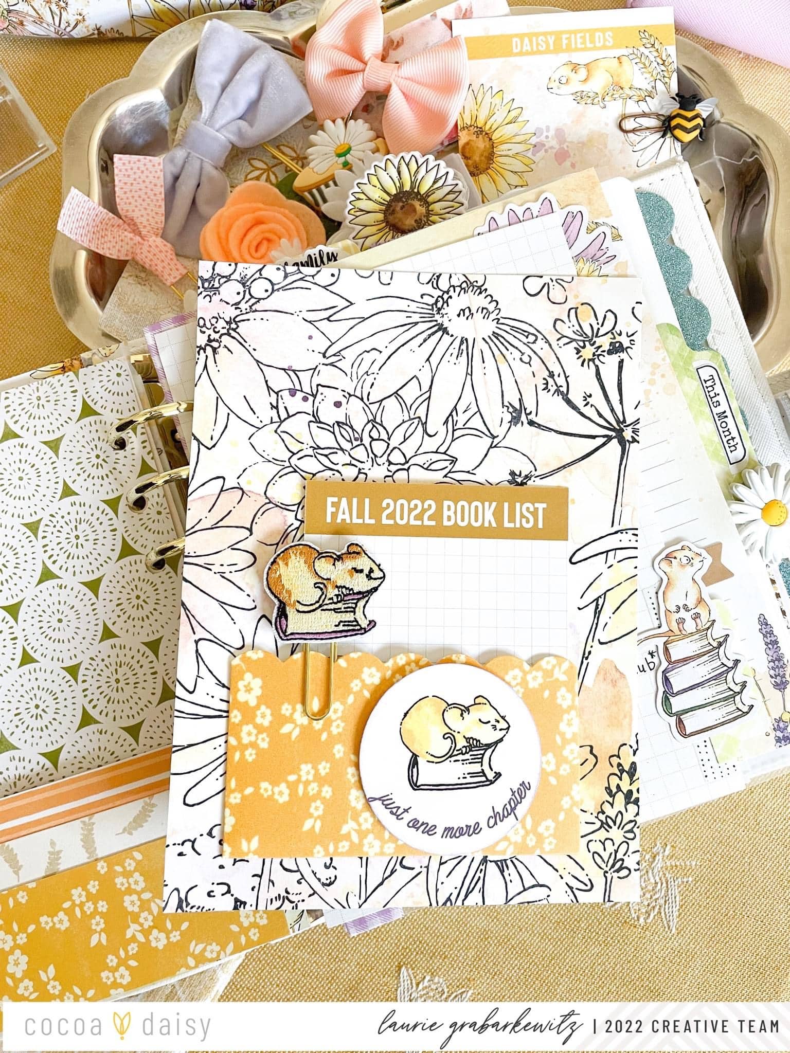 My third idea was to turn one into a fall book list. For this idea, I covered the listing side with some paper and used one of the pocket cards from the Daisy Fields Modern Memory Keeping Kit.