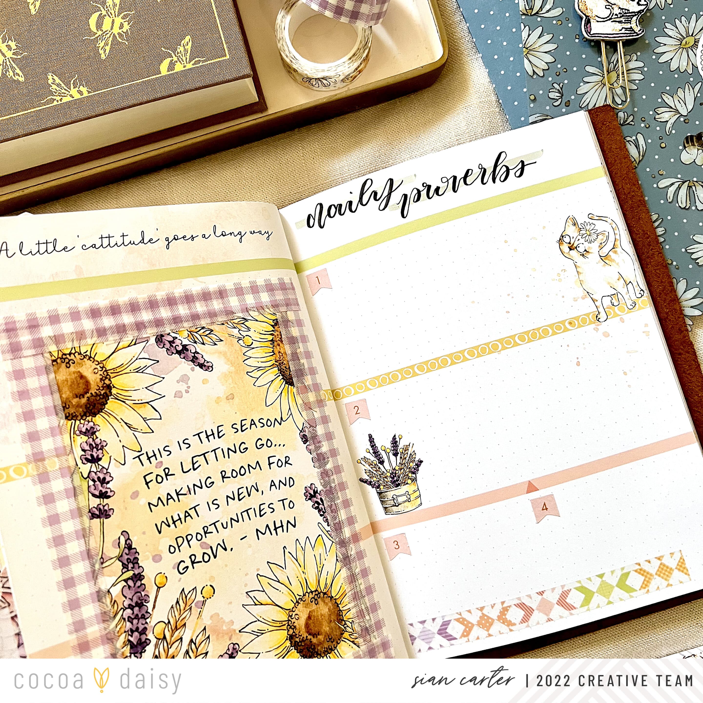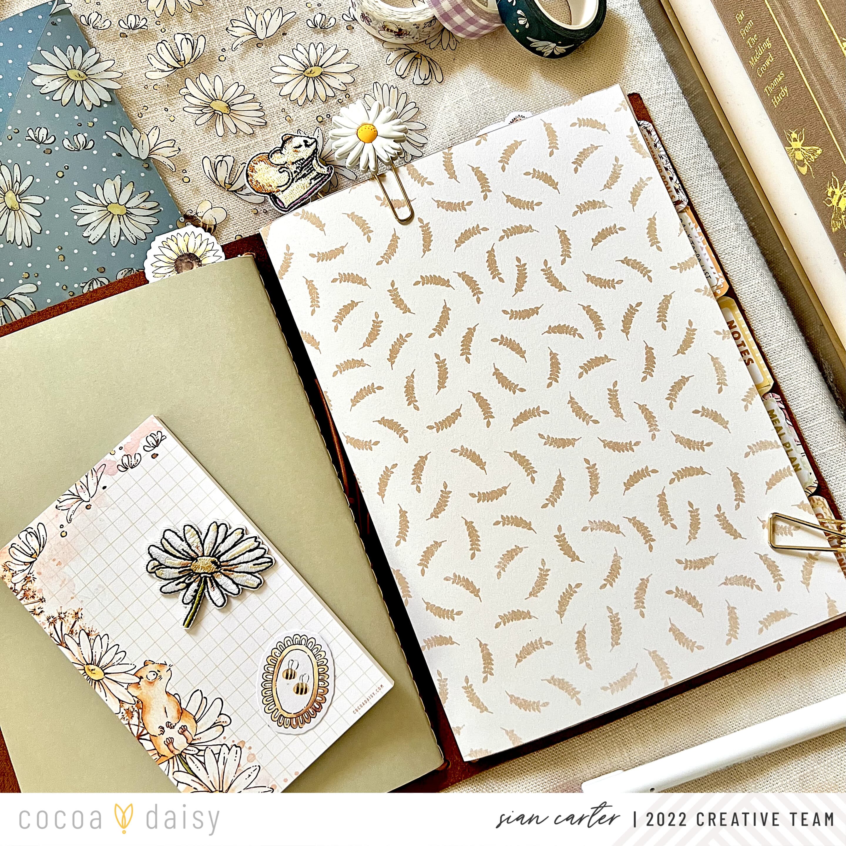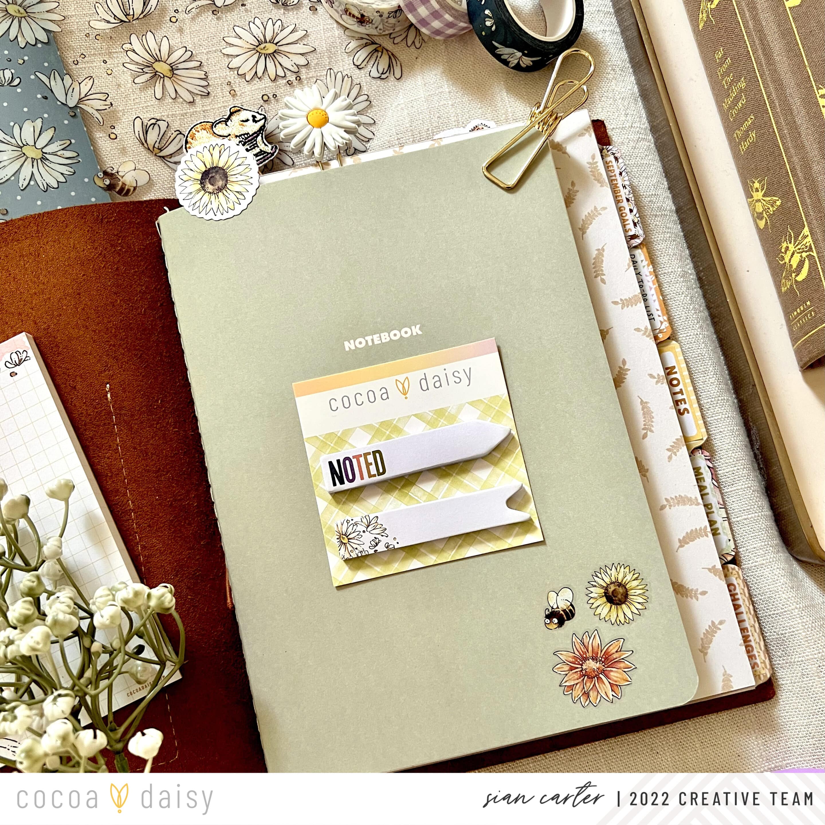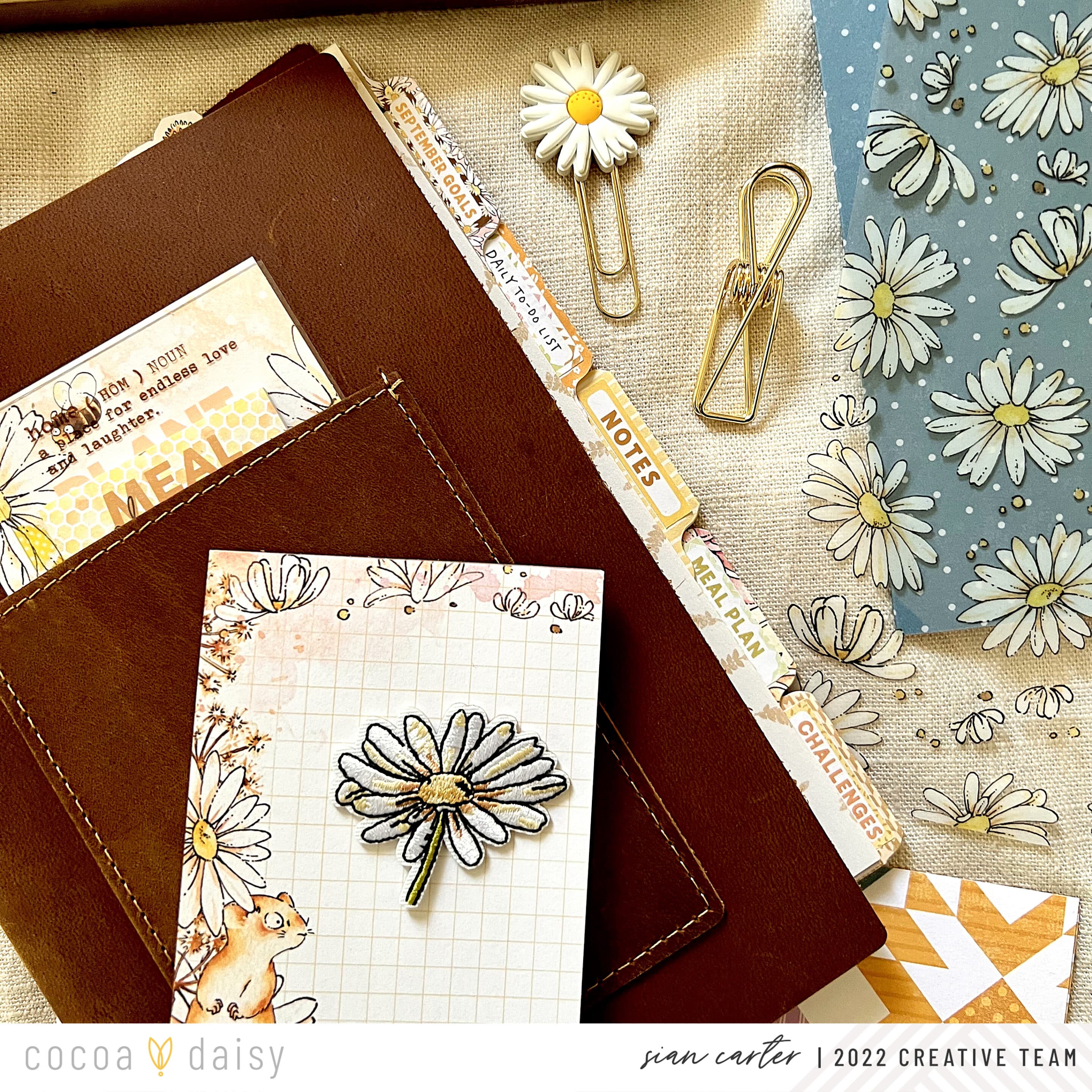 I loved finding ways to incorporate pieces from the Daisy Fields Planner Kit into my setup, especially ones where I wouldn’t cut or transform into something else. I place them front and center in my planner for a functional, yet decorative way. This month we’ve received a clear acetate on which to place the meal planner sticky notepad on.