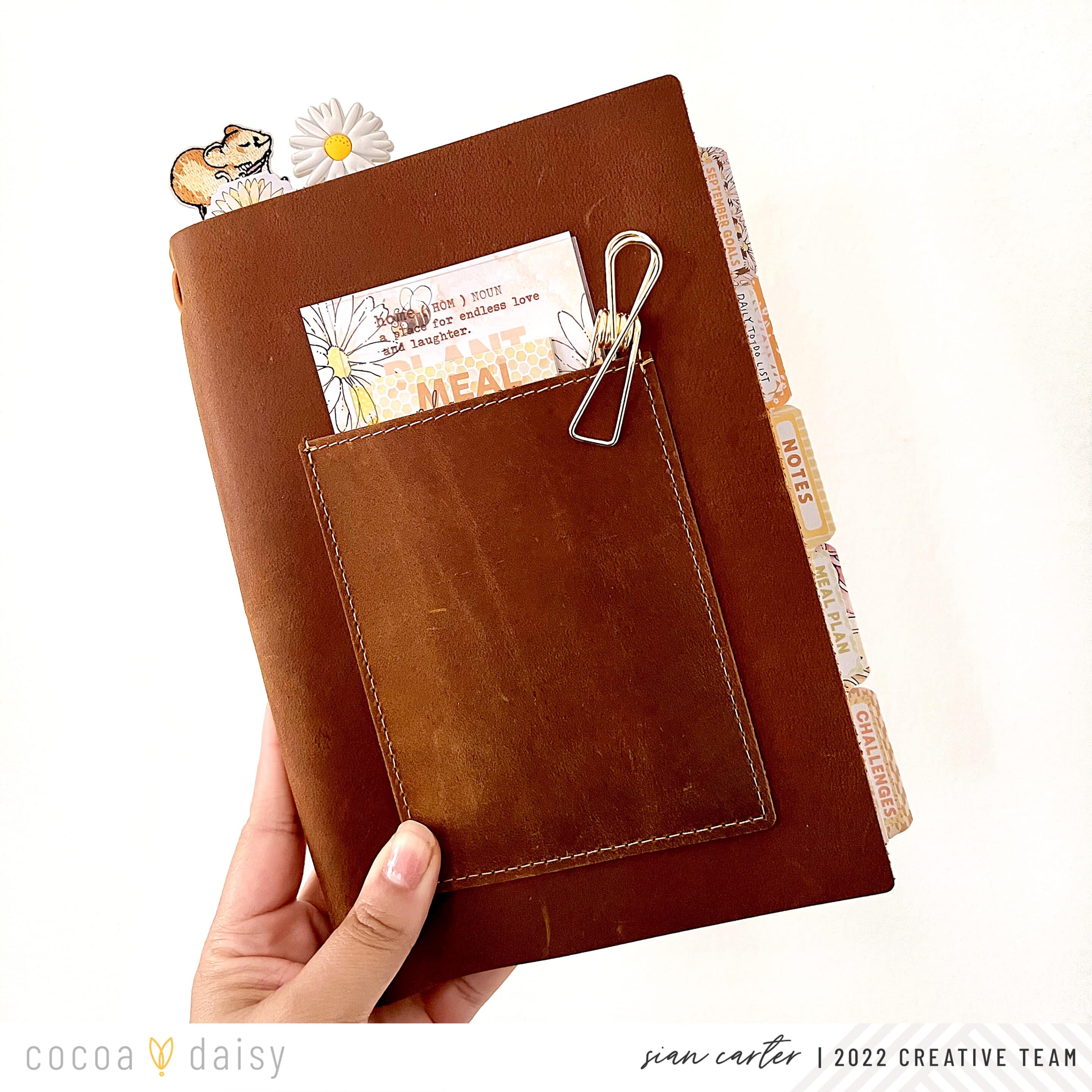 Pockets are one of my favorite things to add to my covers because it makes that space even more functional than it is in protecting my planner inserts. But with this quite wide and dimensional item, it requires a little more thought than your standard pocket. By making an accordion pocket, it aids in making any bulky item easily accessible, and in this case, there was so much extra room, I also added the notepad from the Daisy Fields Planner Kit as well. Let’s get to how to make a simple version of this function treat.
