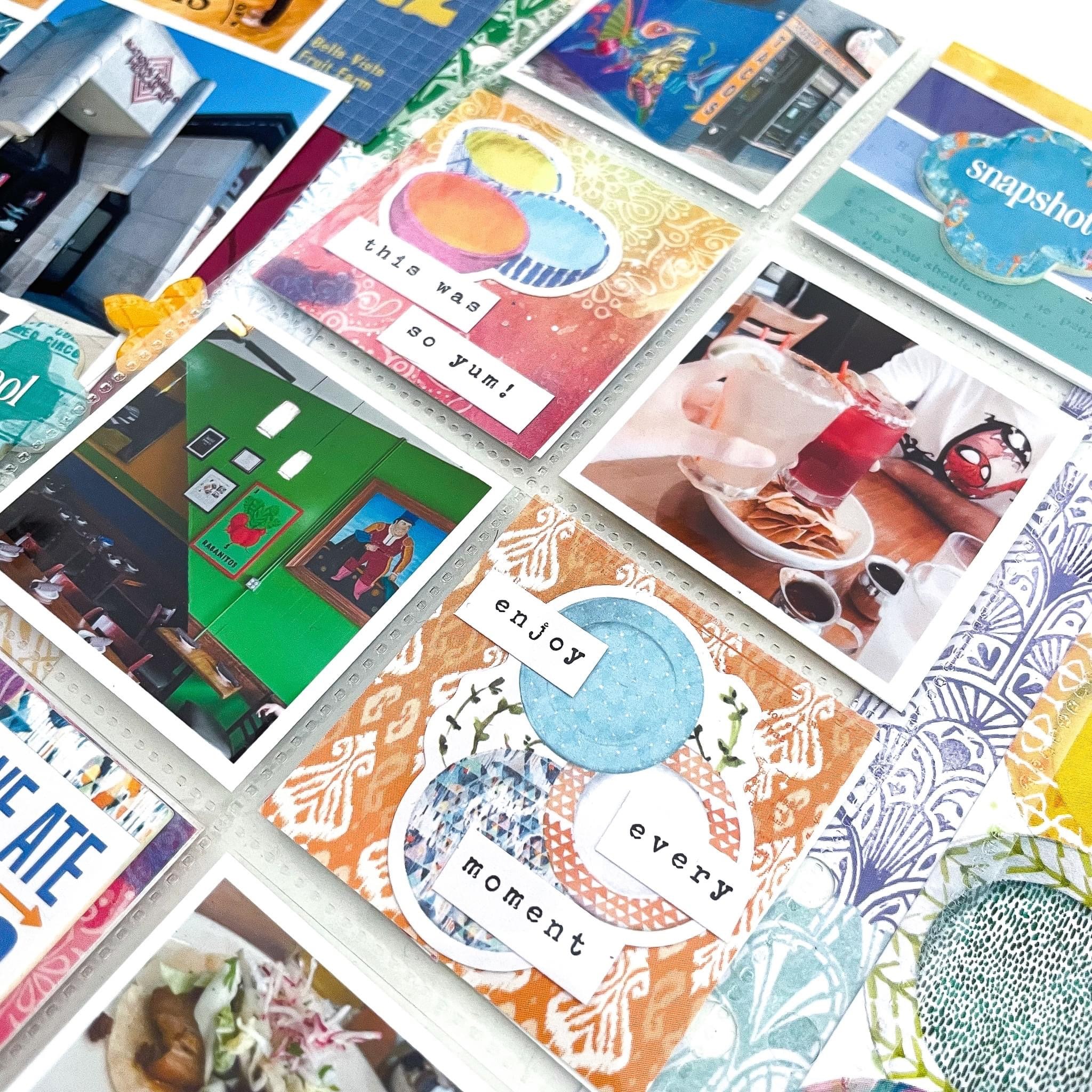 I love embellishing all my projects, but dressing up pocket page cards makes me especially happy. I enjoy the challenge of working on the individual cards and photos while being mindful of the cohesive design of the spread as a whole.