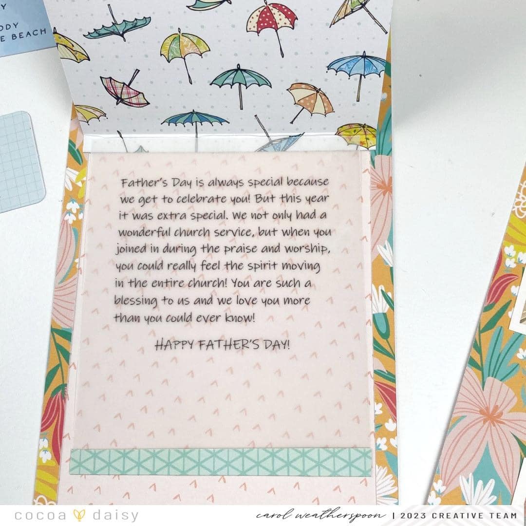 As a little surprise, I hid my journaling behind my photo! I also included a sentiment die cut and another piece of double-sided patterned paper. I love how that turned out! Creating flips is a great option for adding extra photos or keeping your journaling more private.