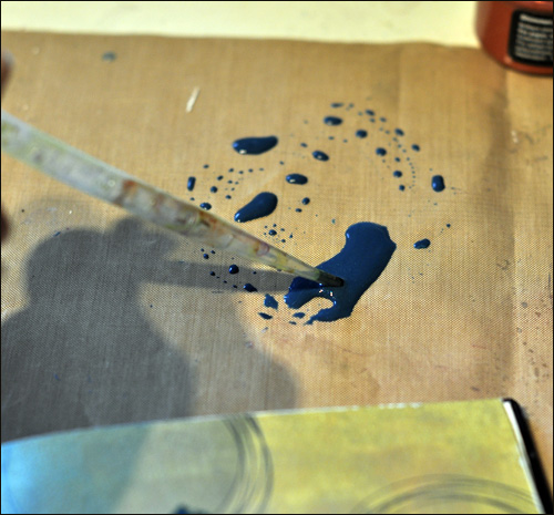 I then added some paint splatters onto the page, diluting the paint on my craft sheet and using a pipette.