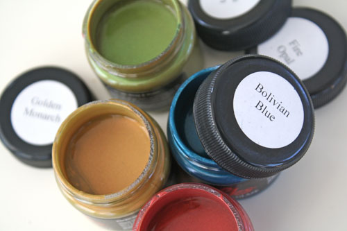 I did this with three of the colours, Bolivian Blue, Moss Green and Golden Monarch.