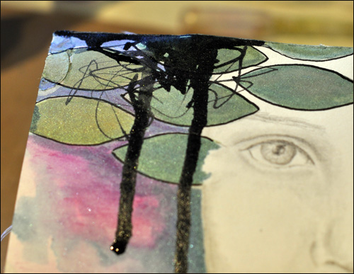 I added some black mist by unscrewing the bottle and applying the mist using the tube. I also did some scribbling with the tube.