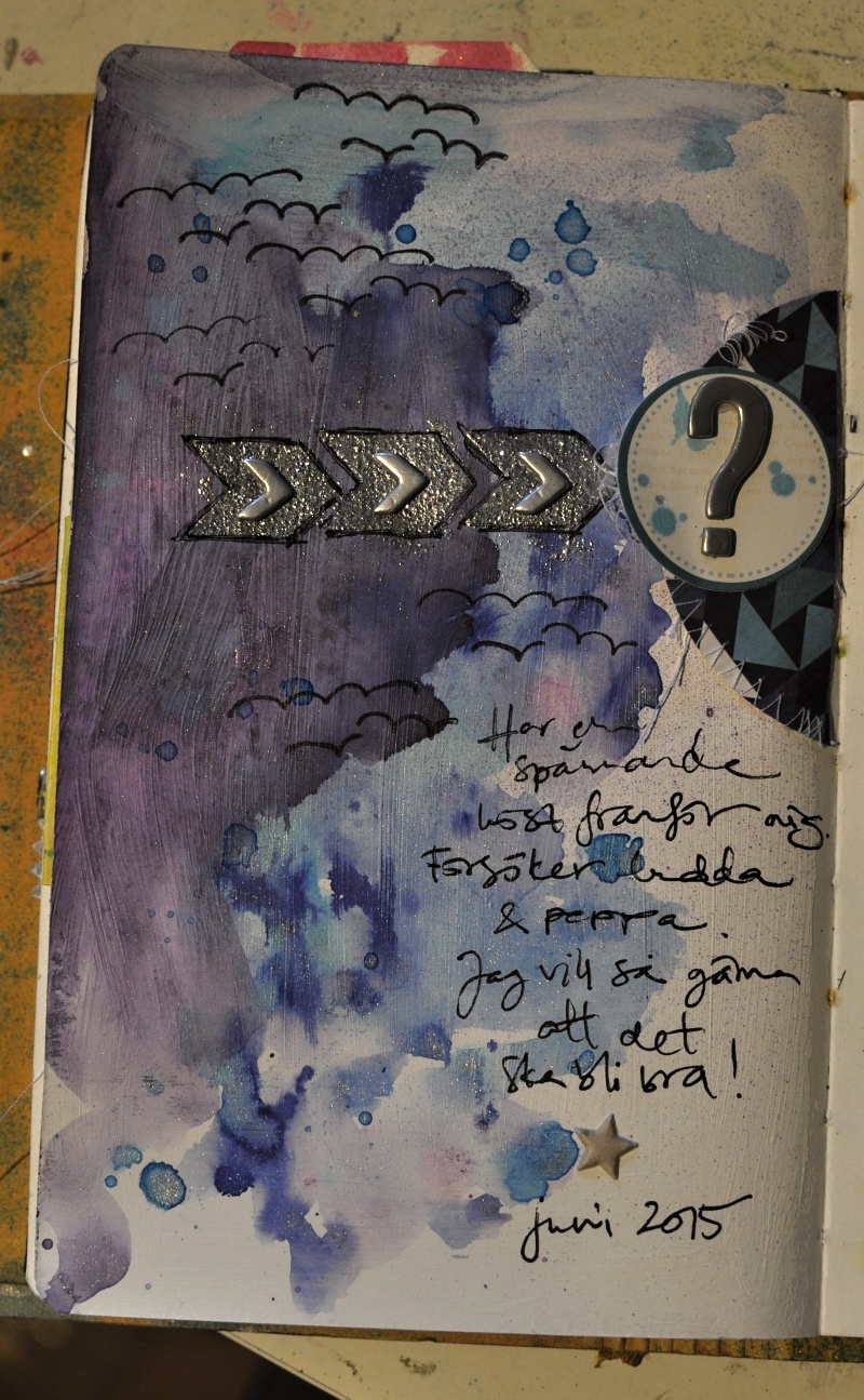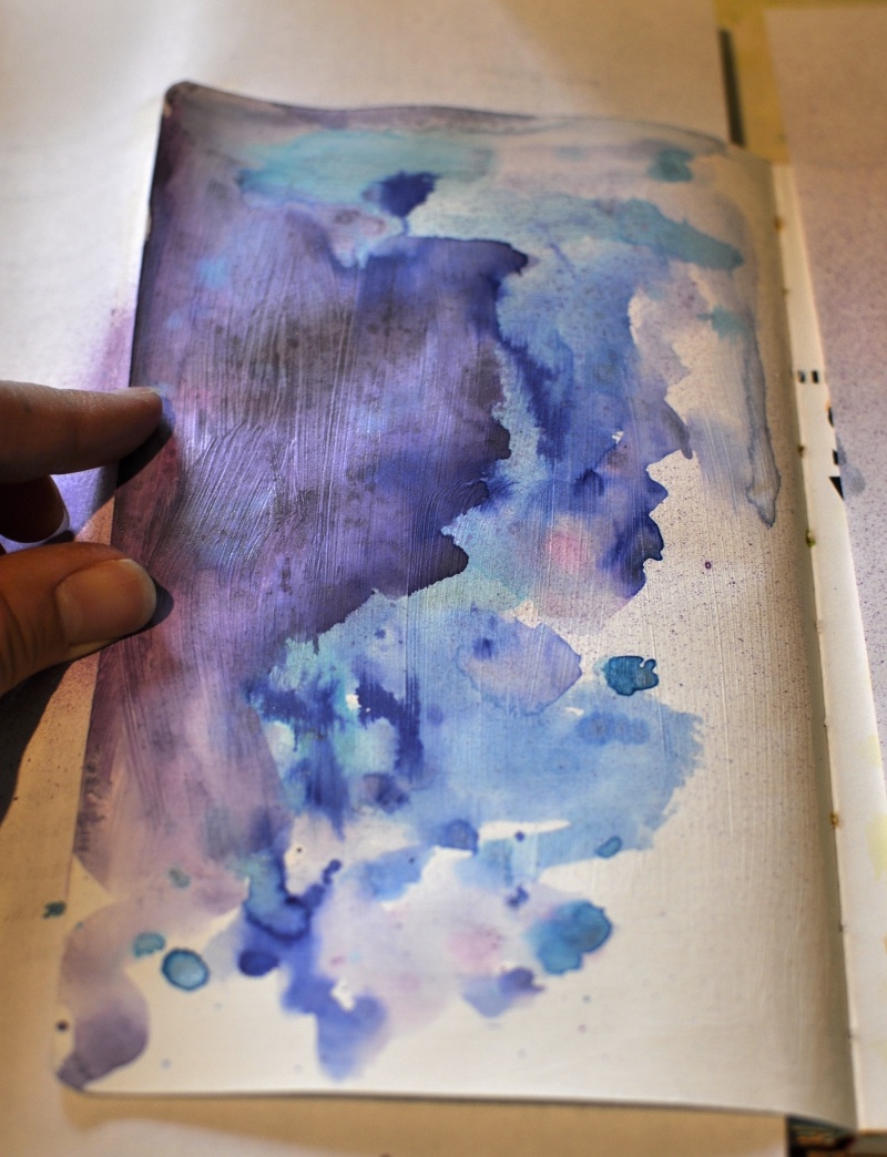 This page was started with a mix of three or four different mists, on top of gesso.