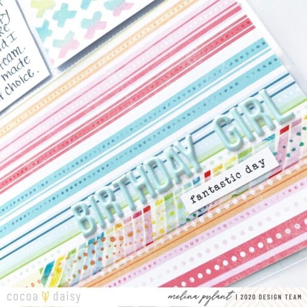 Our To the Sea collection can be used to document many types of stories that are not related to the beach, ocean, vacation, or summer. In fact, our kits complement one another across time too and bringing various items from past and present kits can provide additional opportunities for creating unique layouts. Today DT member Melina is sharing a special layout that shows how the bold and bright colors and patterned papers of To the Sea and other kits can be collated to tell a story of celebration. Let’s take a look.