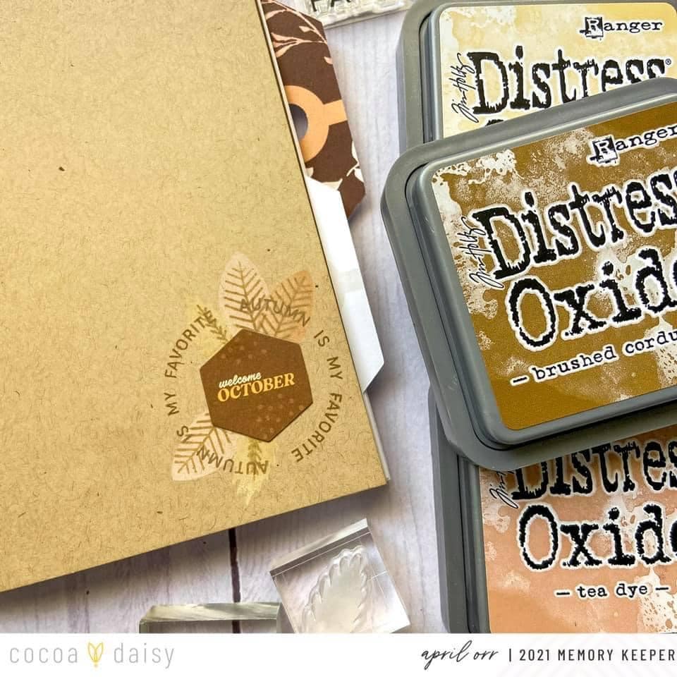 I used the label stamp in apple colors twice, once for the sentiment and once for the date. My handwritten journaling balances the photo and reminds me of my feelings of anticipation on this early fall day!”