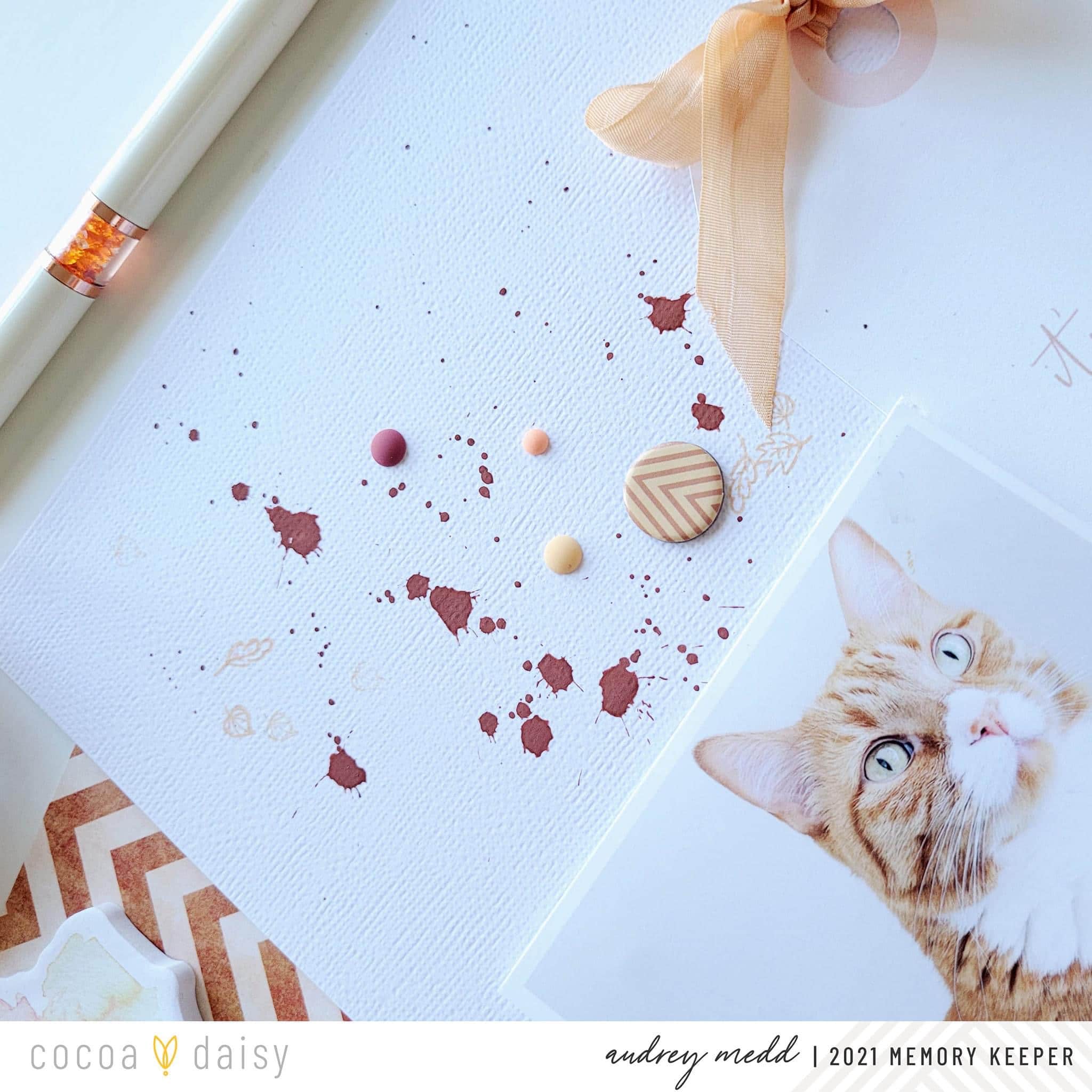 The chipboard found in the Umber & Gold Modern Memory Keeping Kit and the Umber & Gold Traveler’s Notebook Memory Keeping Kit is so fun. These tiny chipboard circles really add some pop to this page.