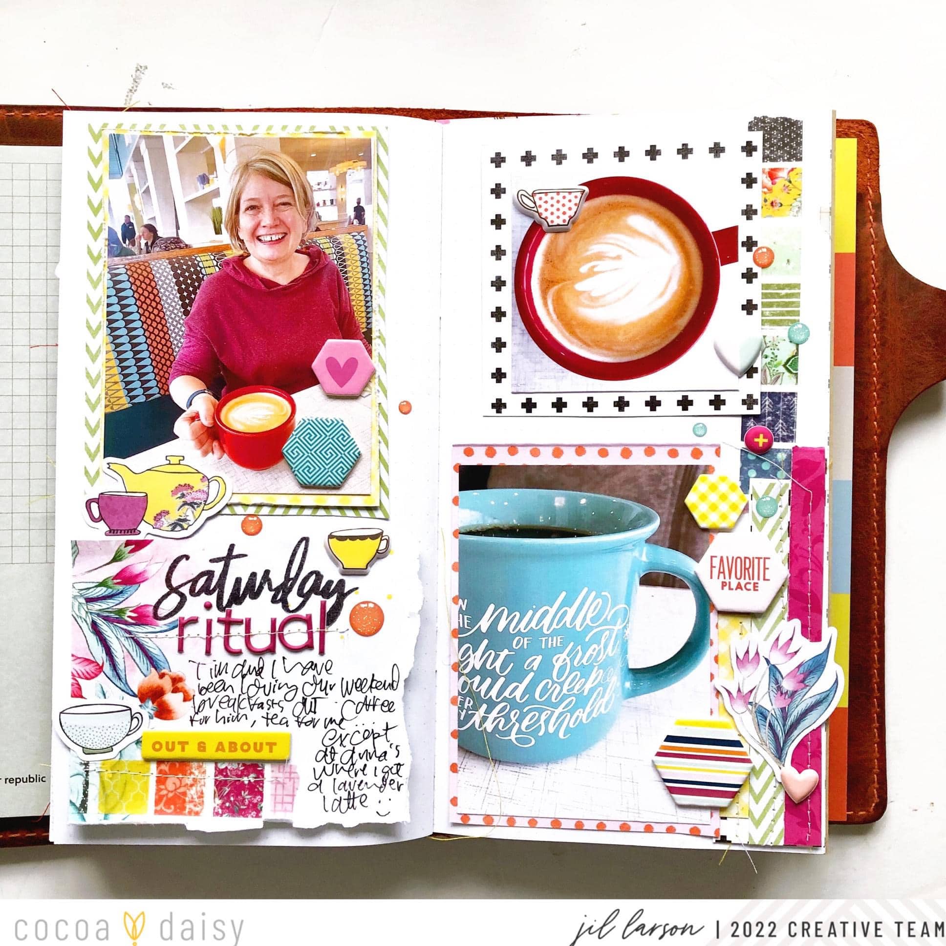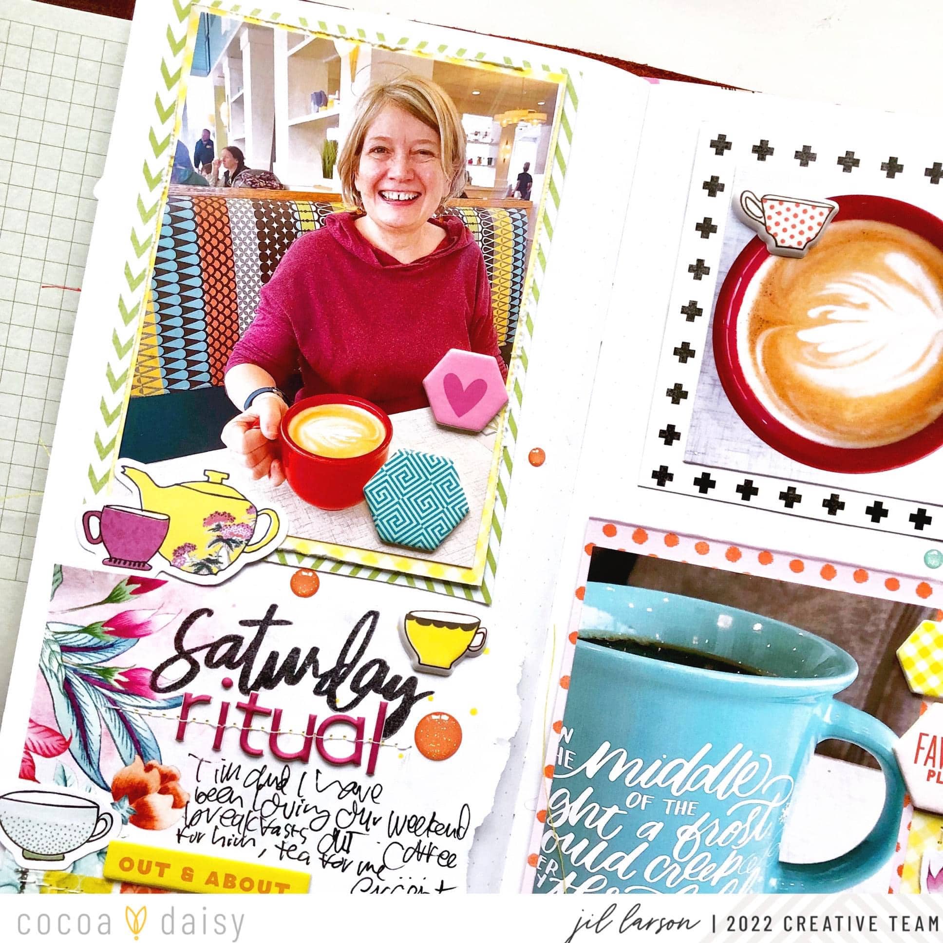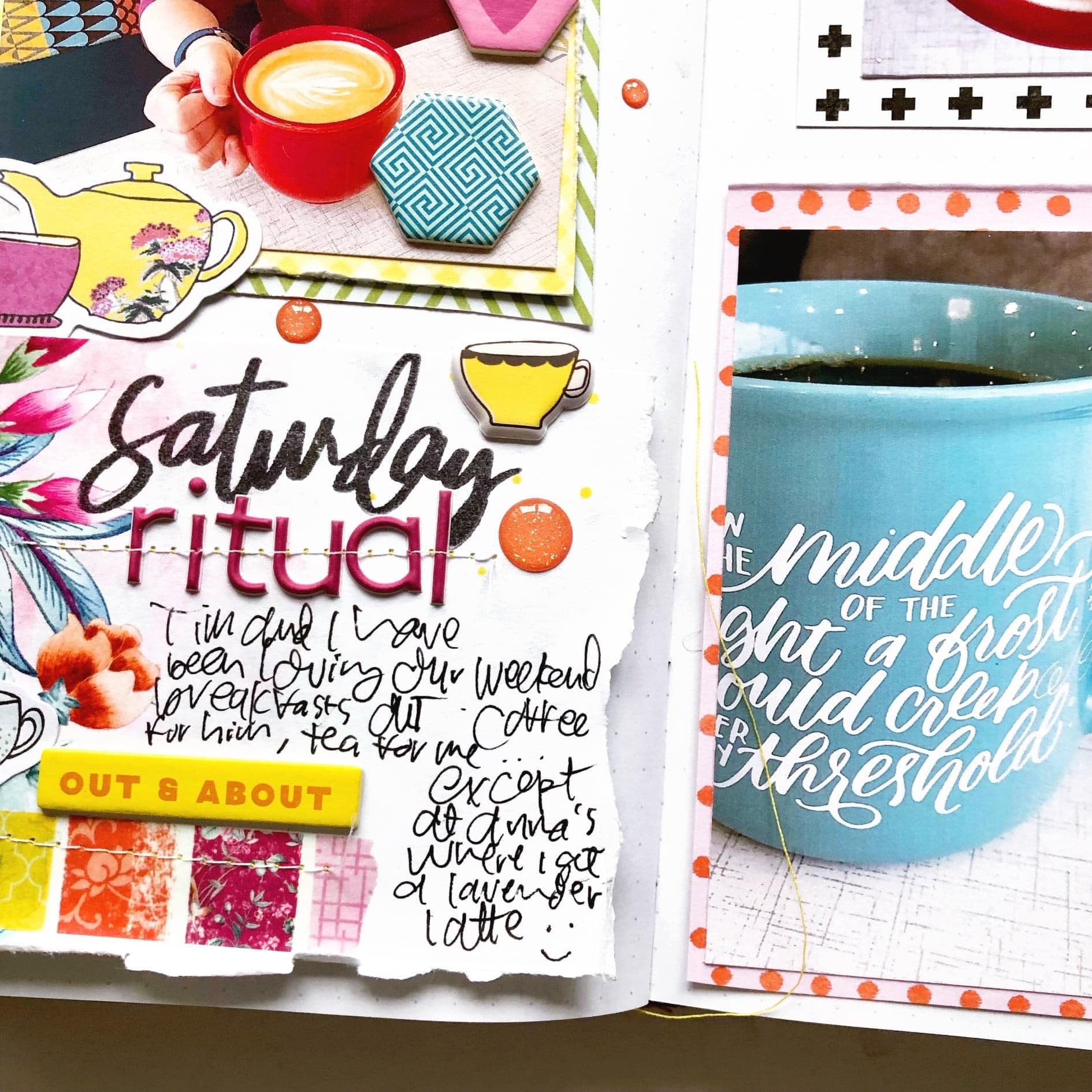 I had so much color going on in my photos from a recent breakfast out, but I decided that Afternoon Tea Collection was the perfect kit to document this experience, given that the collection is so wonderfully vibrant! I also knew that the little cup motifs would be perfect for my focus on what we sip while waiting for our breakfast.