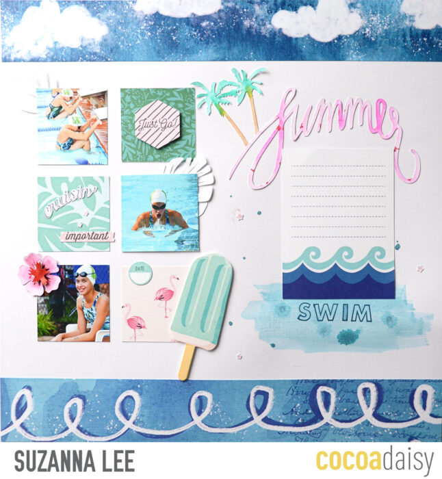 My favorite part on Suzanna’s page is the water-colored die cuts. I hear she has a video to share with you all on how she made them. I can’t wait to see it!