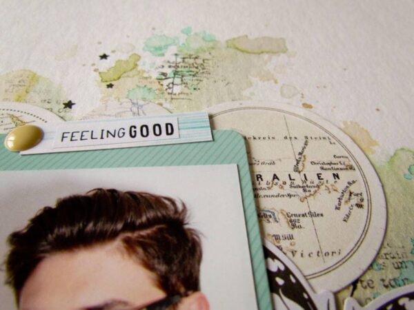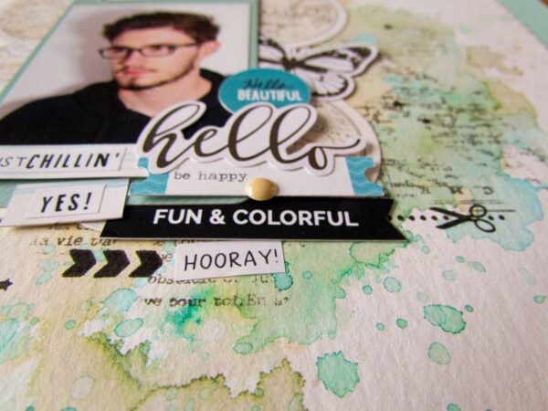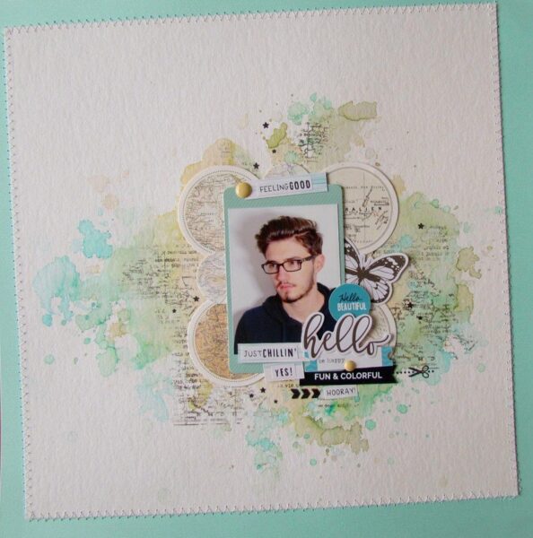 Celine used the sketch in clustering all the circles are behind her picture. Her background is made with distress oxide and it’s gorgeous! In this layout she used elements from the March, February and January kits.