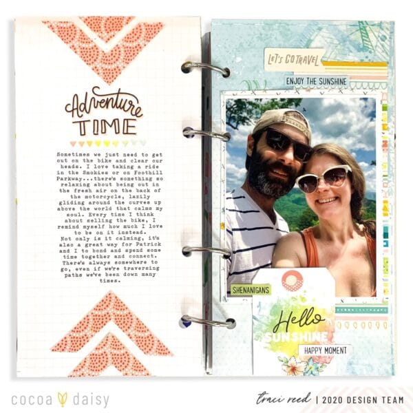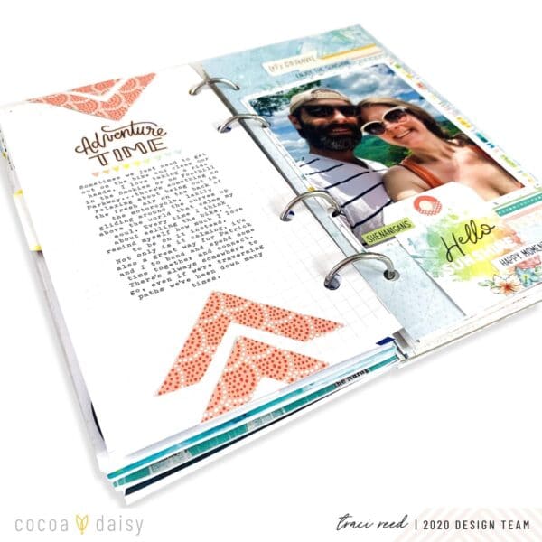 And our final design is a TN layout from Traci and she included a process video you can view here. “For my layout, I decided to use the Wild Adventure layout idea included in the TNMK instruction sheet for the Serengeti collection. The Wild Adventure layout includes a full page photo on the right hand side of the spread, but I decided to adapt the layout to use a regular sized photo instead.”
