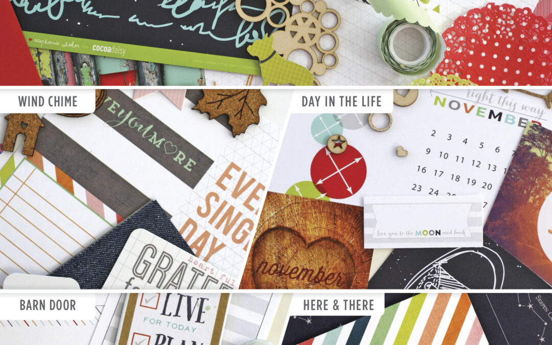 You can feel the seasons turning, and Weathervane, our November kit collection, captures it perfectly. Not your typical November colors-but definitely packed full of the prettiest collection of products we’ve ever seen-gather to welcome this pre-winter month. There’s something in the way the afternoon sun makes the red barn, the golden trees, the blue skies more vivid this time of year, it makes you stop and enjoy the beauty. We’ve pulled those same sorts of rich colors together this month and mixed all variety of patterned papers, embellishments, alphabets, and trims together to offer you a most gorgeous kit collection. We know you will love Weathervane as much as we do!