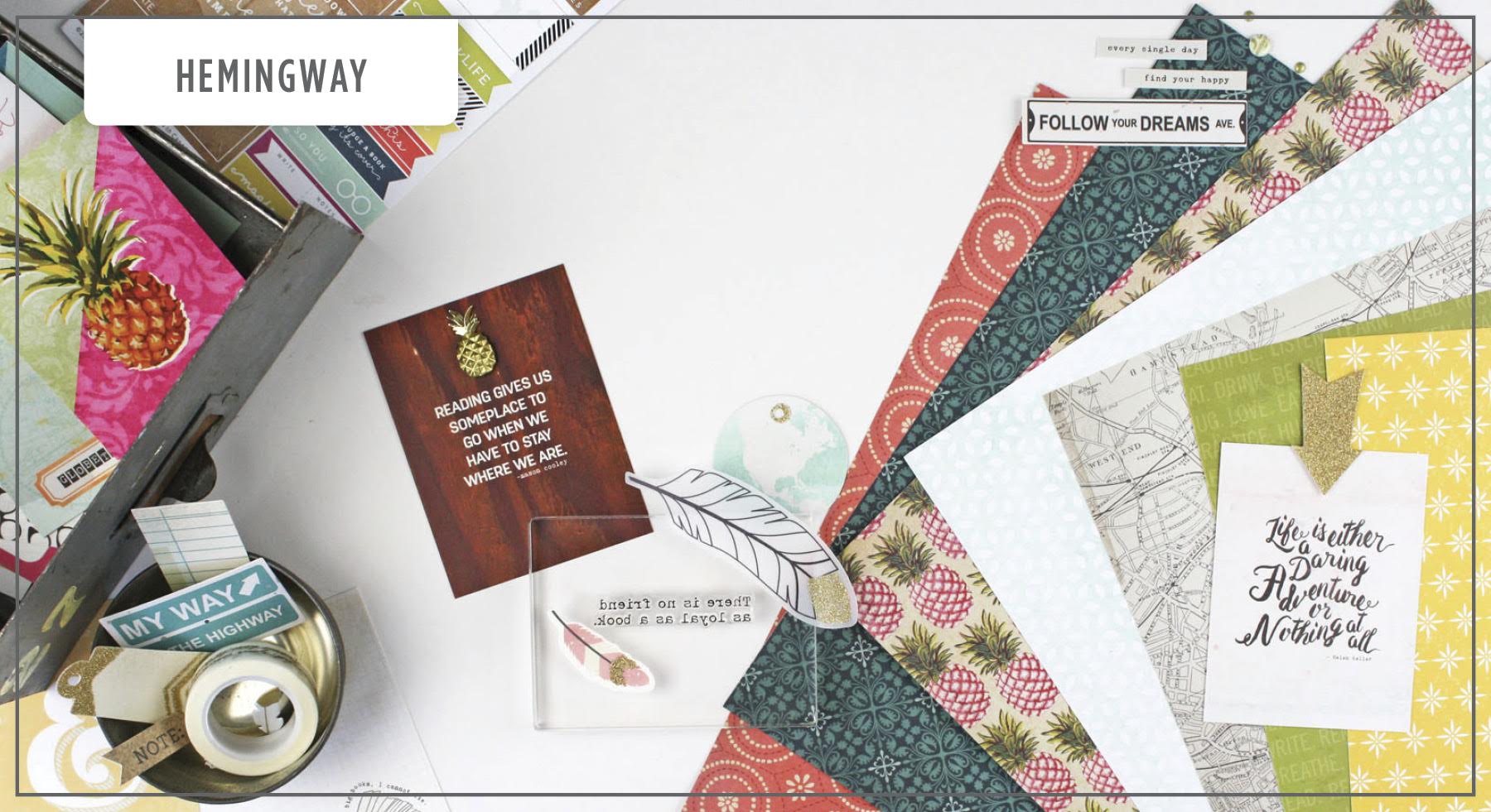 For the love of the adventure, we’ve put together a most gorgeous collection we’re calling Hemingway. Slightly worn, with a bit of exotic travel mixed with an antique book feel, we’ve packed so much goodness in this collection for scrapbooking and pocket scrapbooking, you’re going to find it simple to tell your best stories with Cocoa Daisy this August.