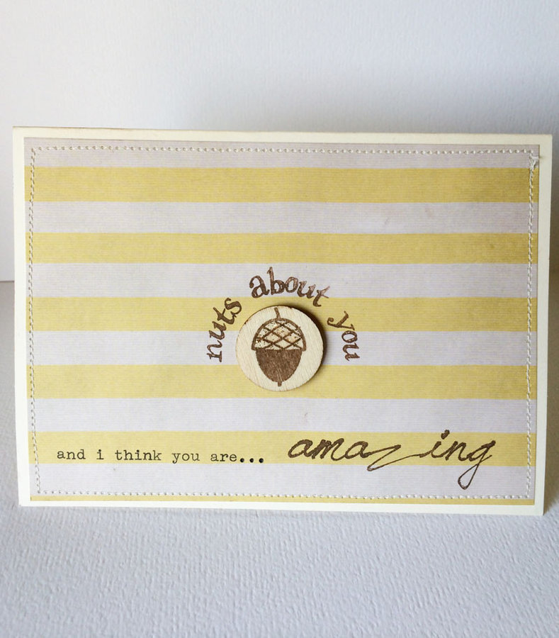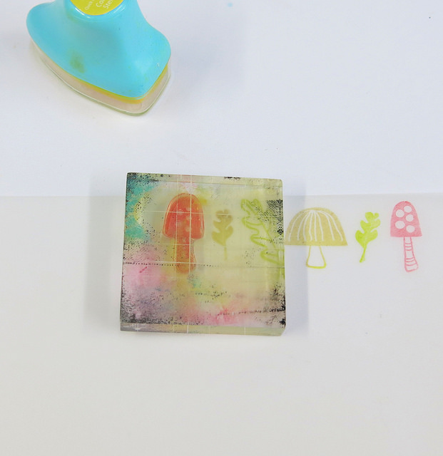 I love how she stamped on wood for this one and used both the Woodland Friends teaming up with the Amazing Triangles.