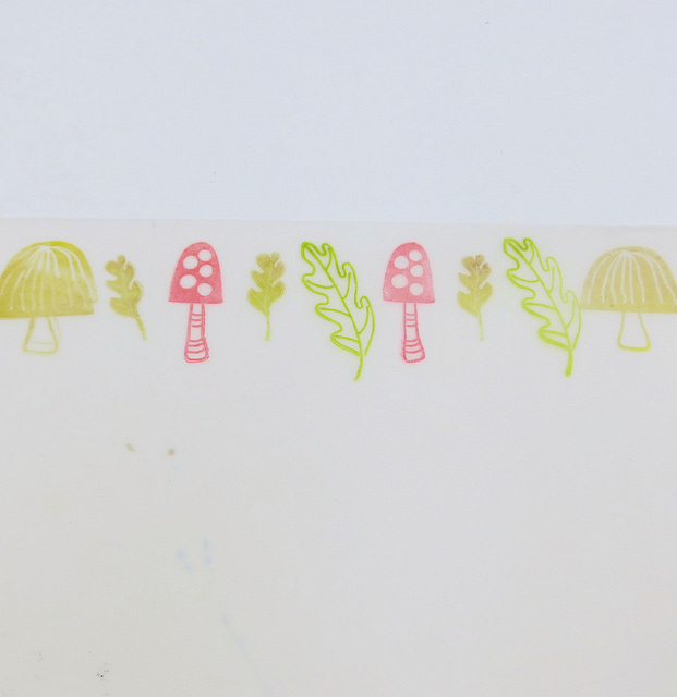 I like to make sure that there is plenty of vellum below so that I can cut it to size after I’ve finished stamping. Make sure it’s nicely dry before you trim.