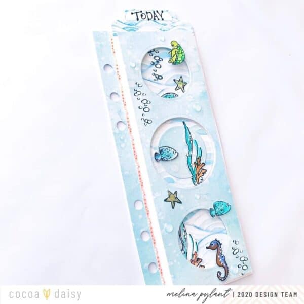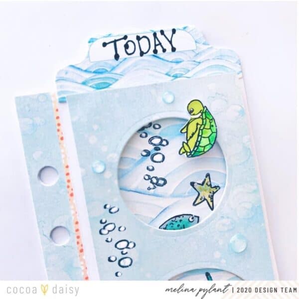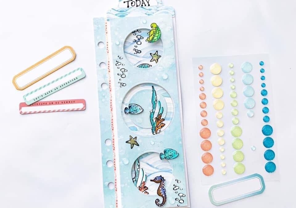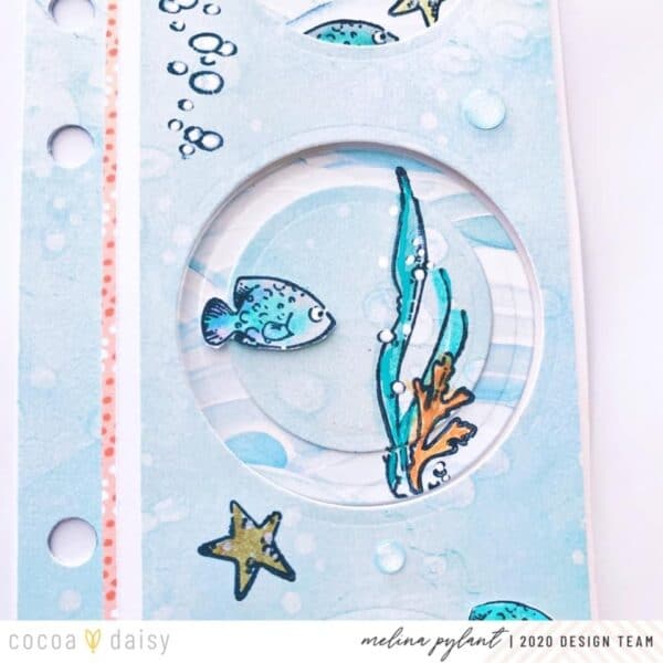 “I think this turned out even better than what I imagined! I used my Big Shot die cutting machine and some Spellbinder circle dies to get the look I wanted of an aquarium or port holes. I adhered the die cut paper on top with pop dots to give it lots of depth and dimension.”