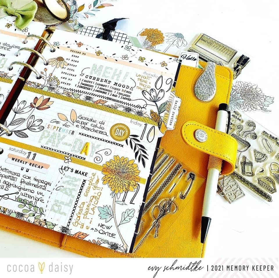 Evy took on our challenge and incorporated new and old stamps in her planner spread.