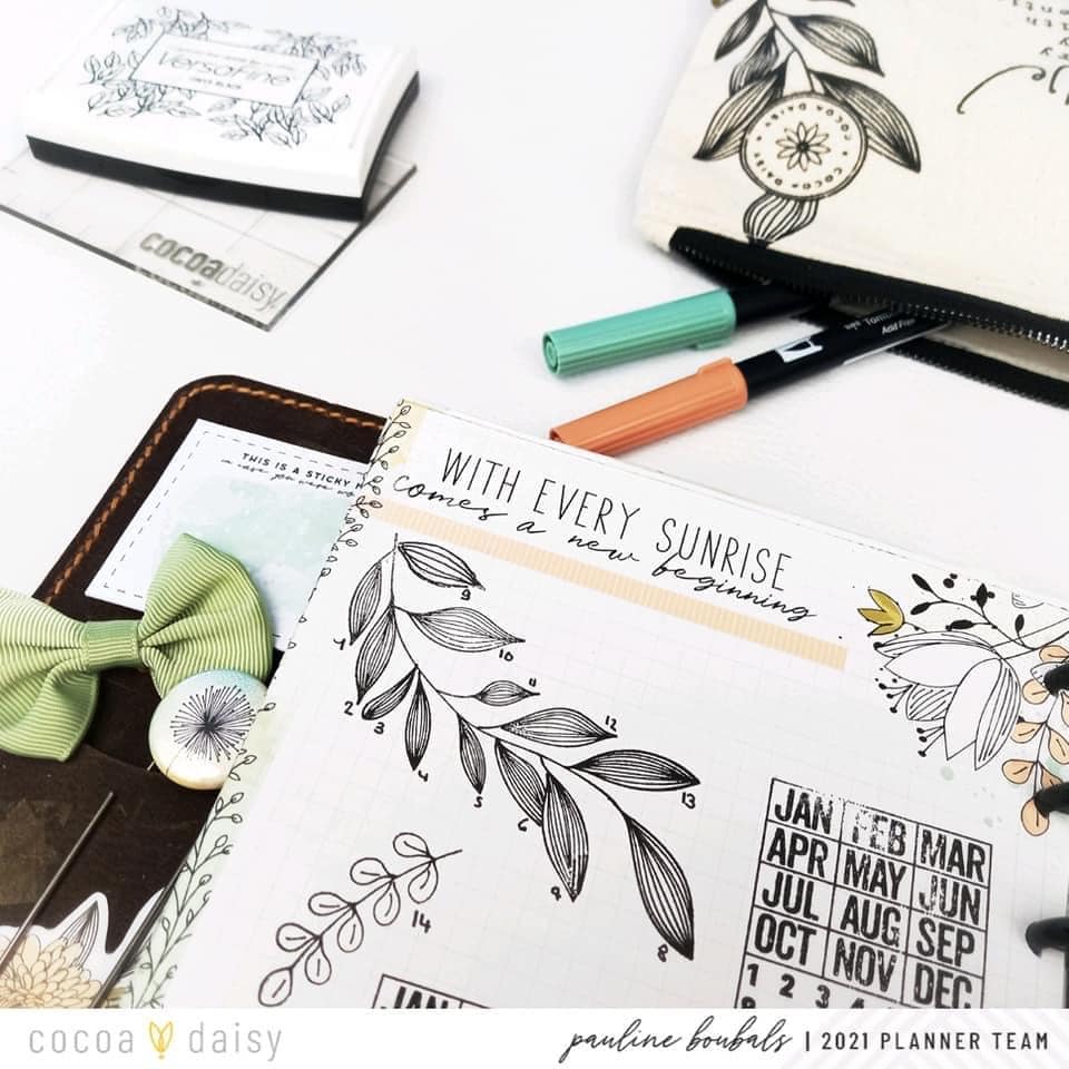 “Stamps are my great passion and every month I show you how I use them in my projects, both in my Simple Dori Traveler Notebook, in layouts, or mini albums. This month I will also show them to you in my planner because the stamps can be used everywhere. If you are new to the use of stamps, buy a good ink (I use the onyx black versafine) and an acrylic block and you are ready to go.