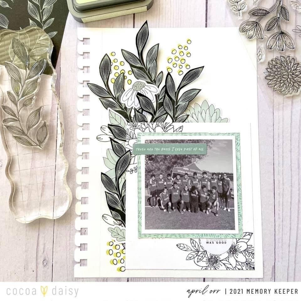 Check out April’s use of the Doodles & Dashes Flower and Doodles Stamp Set in this layout!