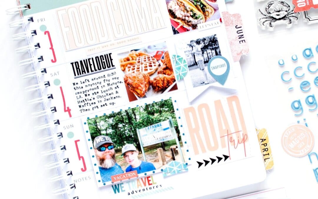The new Wayfarer Collection is great for documenting Summer! We just happened to have gone on a road trip during the first week of June, so I knew all of the travel-themed products in the Wayfarer Modern Memory Keeping Kit would be great for documenting it in my Memory Planner.