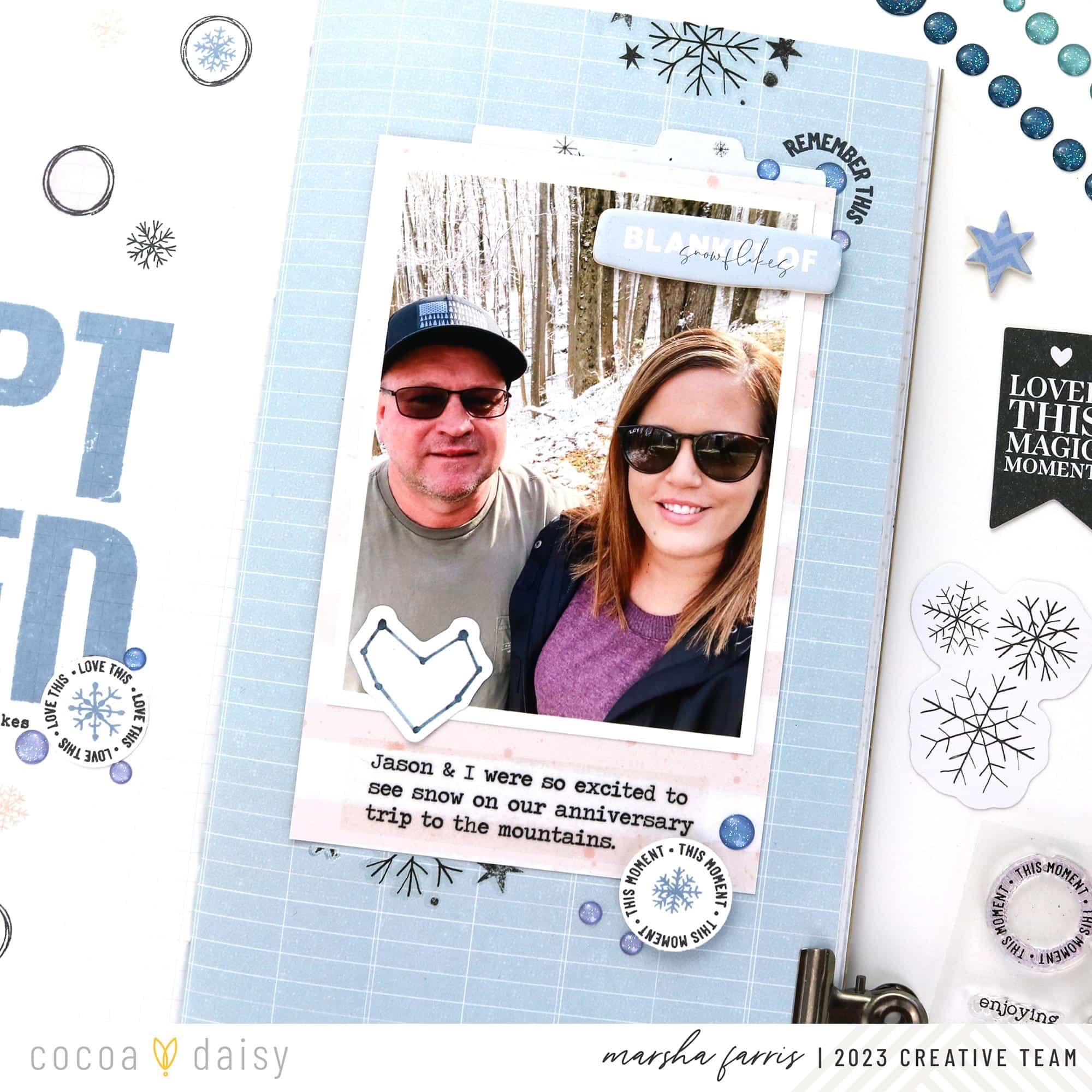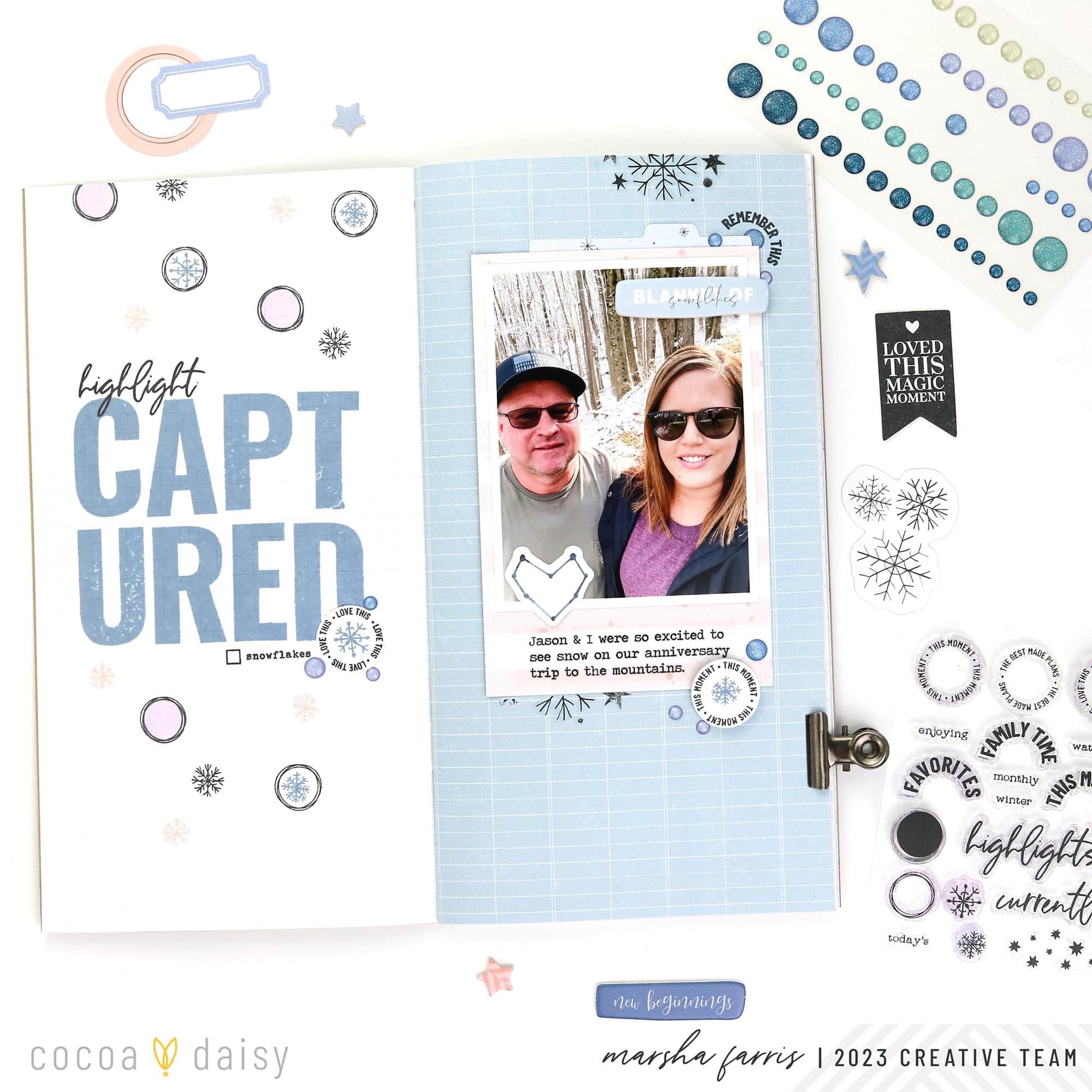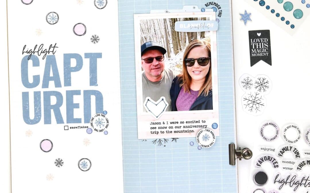 I enjoy using the Simple Dori for memory keeping, and this month’s Nordic Skies Collection was perfect for documenting a snow day from a recent mountain vacation.