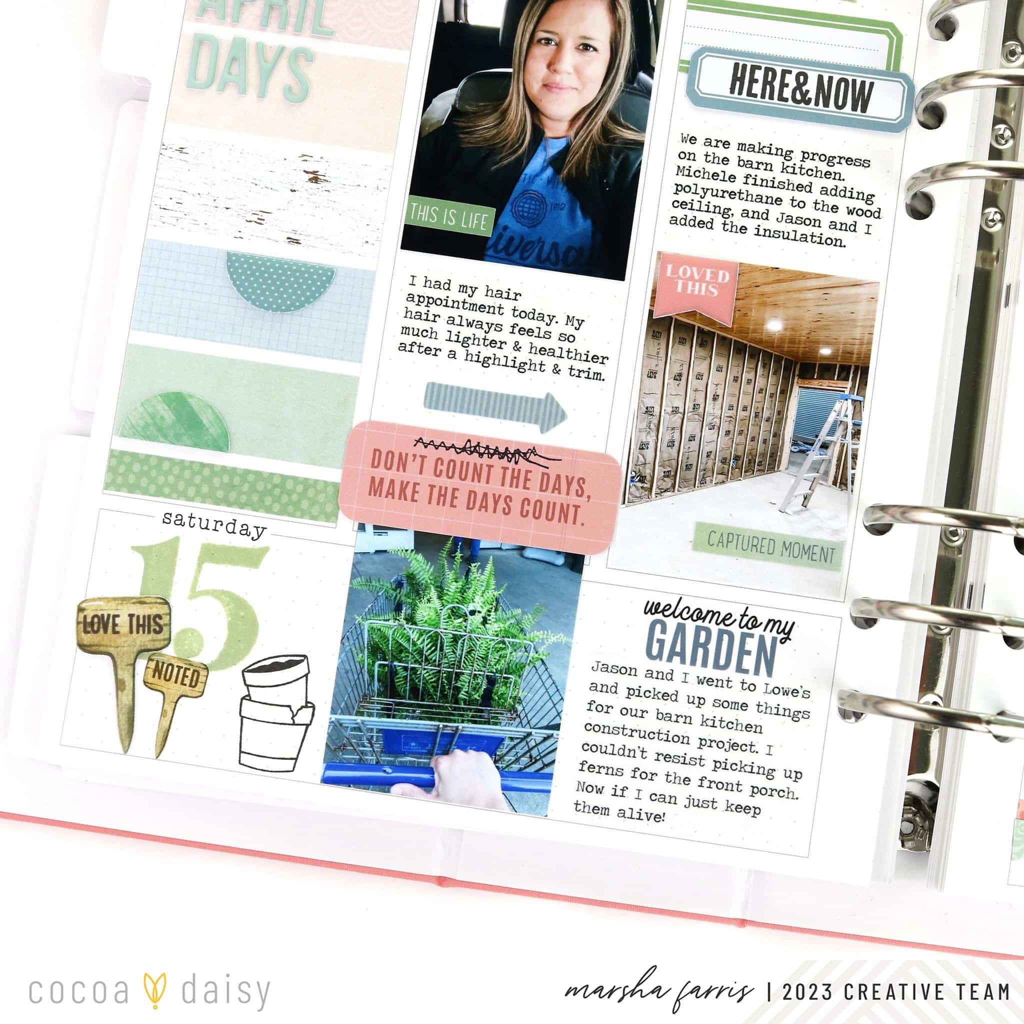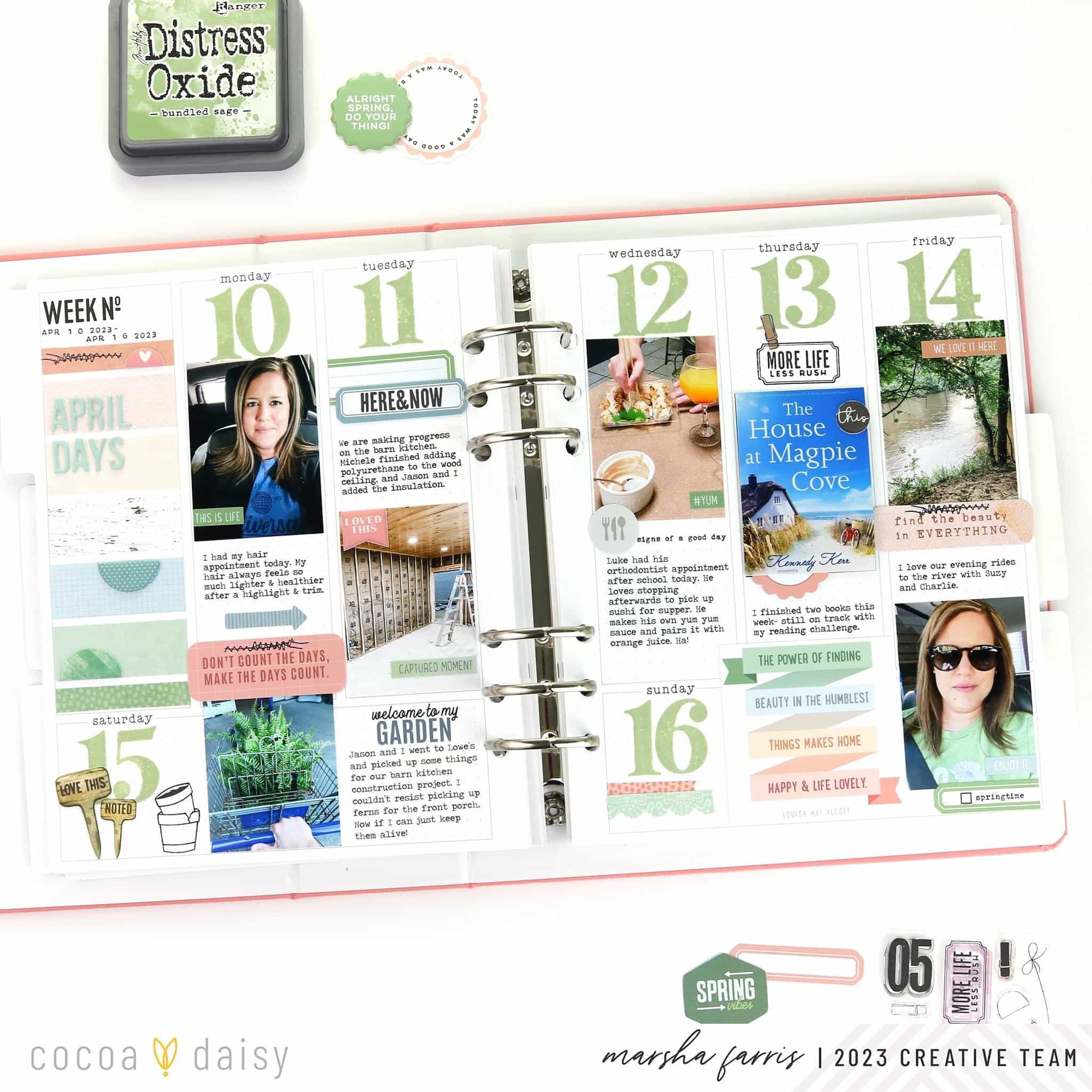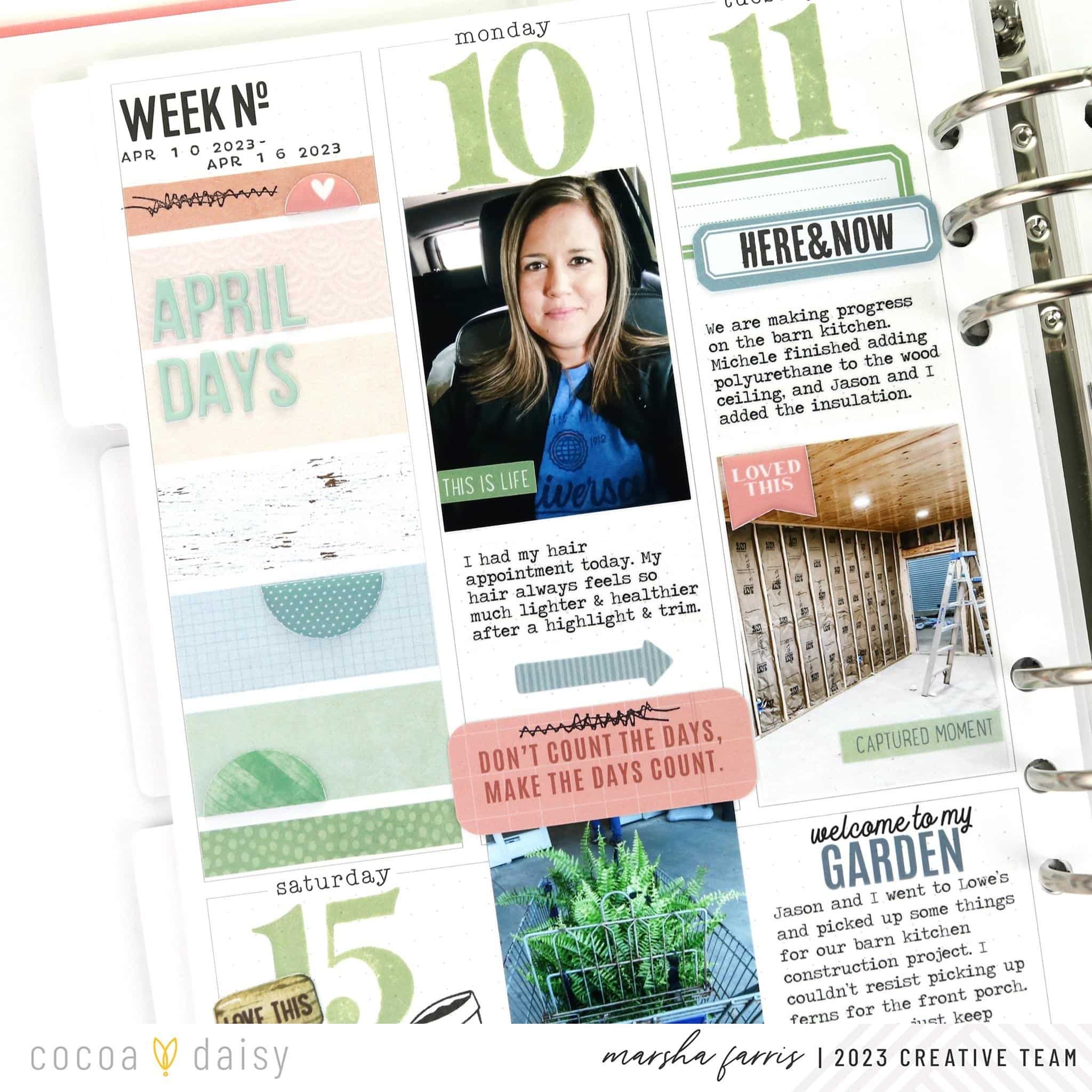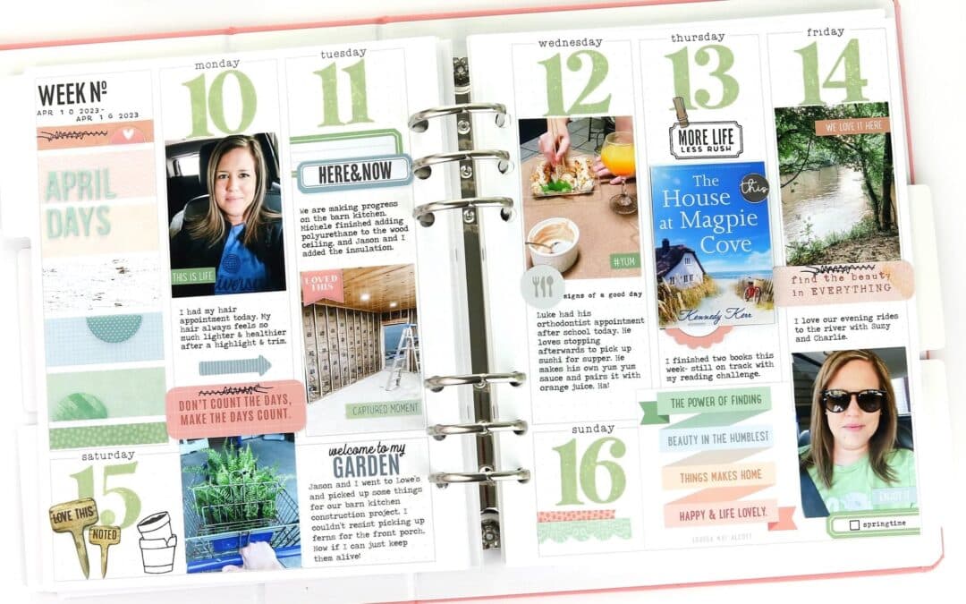 This year I am using the Daisy Planner for my weekly documentation. I enjoy recording the big and small stories that make up my week. The Lillian’s Garden Collection was perfect for this April spread in my memory planner.