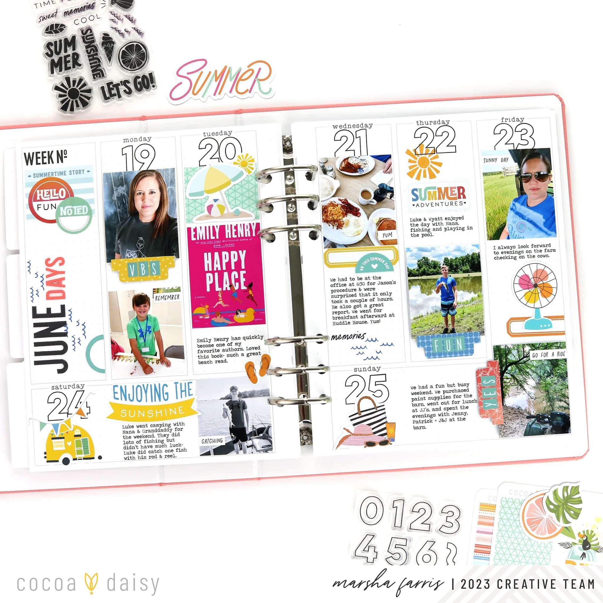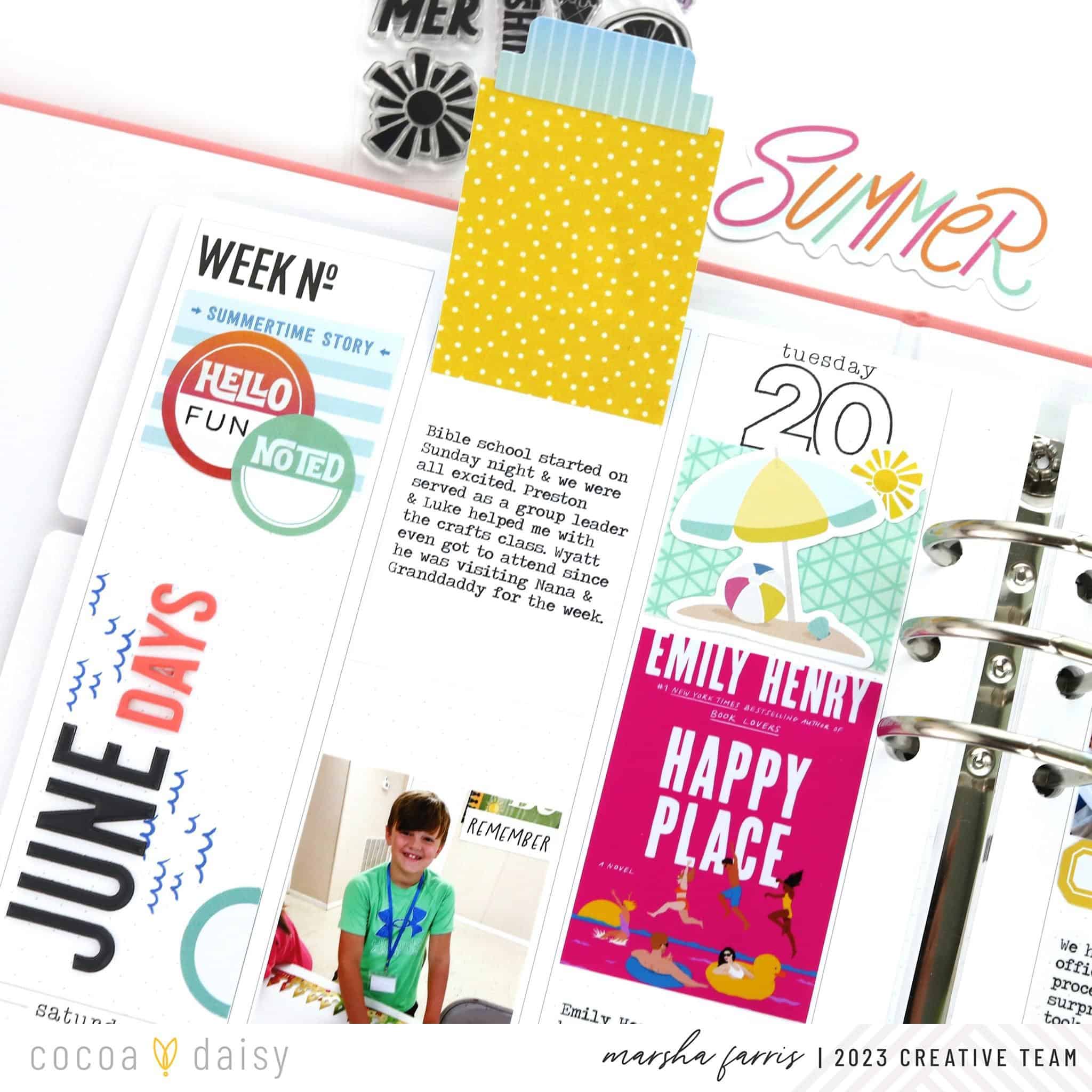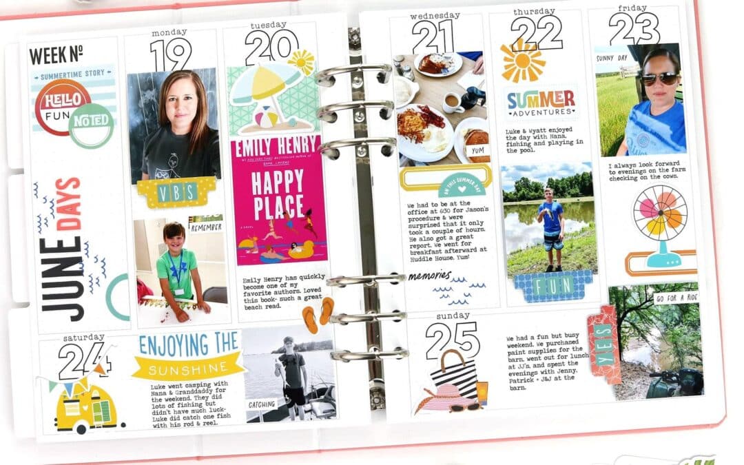 I use the Daisy Planner for my weekly documenting and enjoy recording the stories and photos that make up my week. The Summer Vibes Collection was perfect for this June spread in my memory planner.