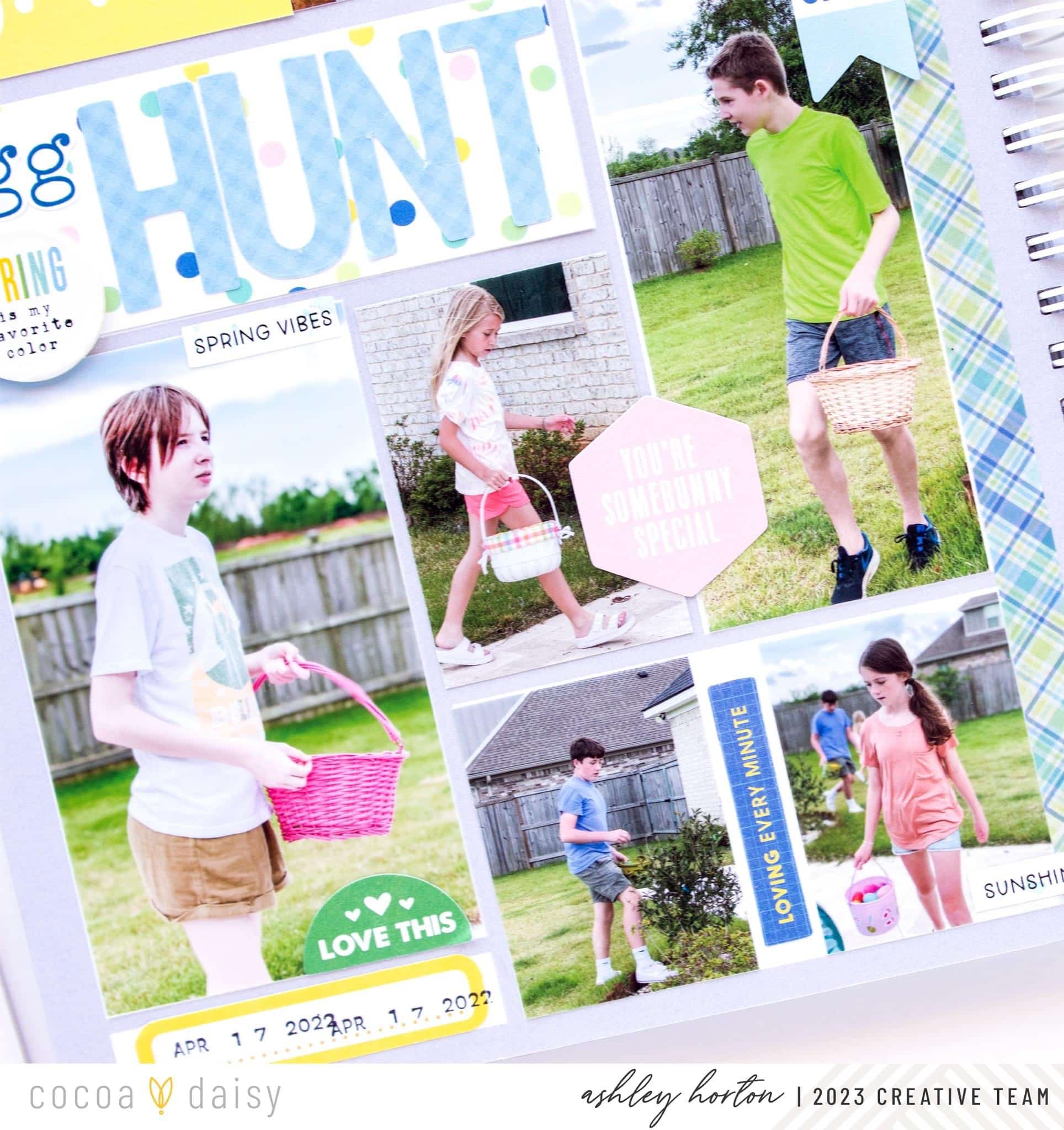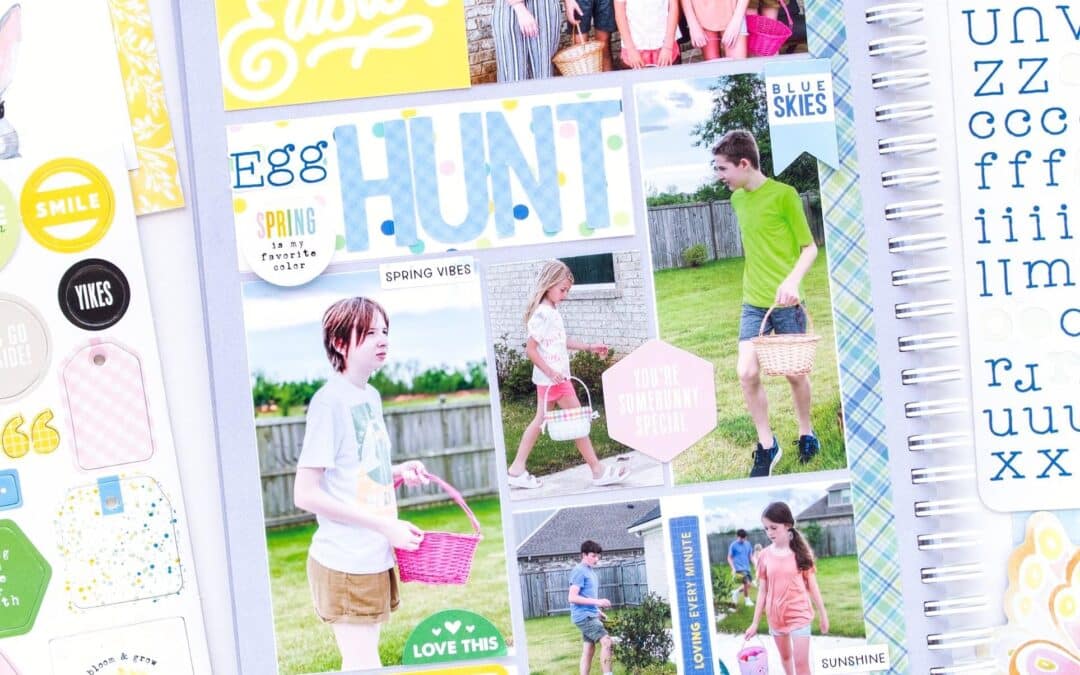 One of the most celebrated Easter traditions is the Egg Hunt! And, I’m so glad our kids still love doing it! It’s a great time to get together with the cousins and find eggs filled with candy…and maybe even a little bit of money! I had a lot of individual photos from last year’s egg hunt, so I thought it would be perfect to document them in my Scrap It Notebook with the Dandelion Wishes Modern Memory Keeping Kit, Dandelion Wishes Travelers Notebook Memory Keeping Kit, and the Dandelion Wishes Memory Keeping Sticker Kit.