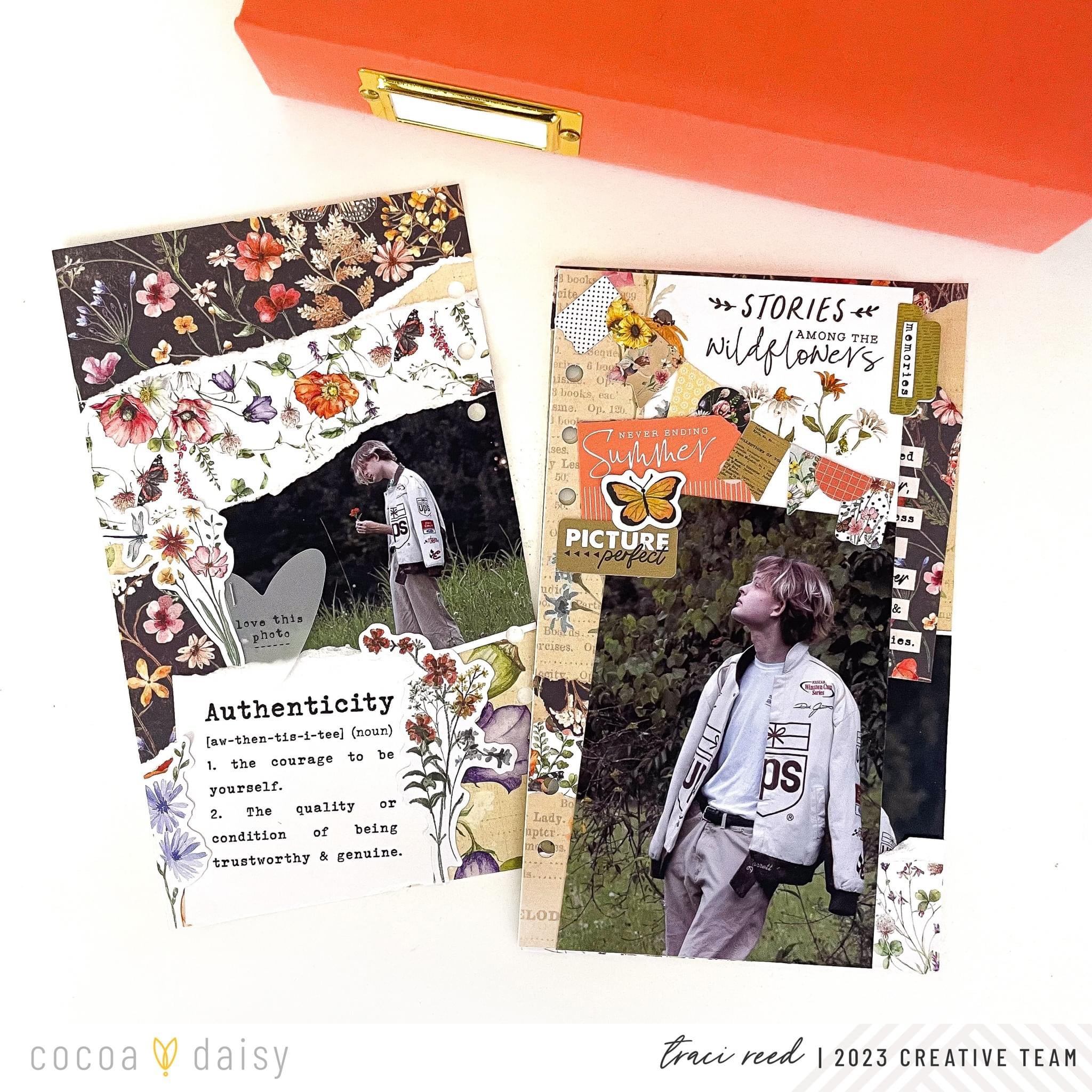 We love the feel of a high-contrast spread using the Quiet Meadow Collection. The whimsy of the botanicals with the dark moody tones is sure to make your memory keeping memorable!