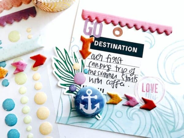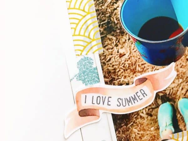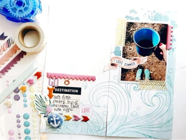 A little journalling, some cute embellishments and some colour to balance out some of the warmer tones on the opposite side of the page and my cluster was done! Easy peasy. If you’re interested, I made a video of my process working on this page.