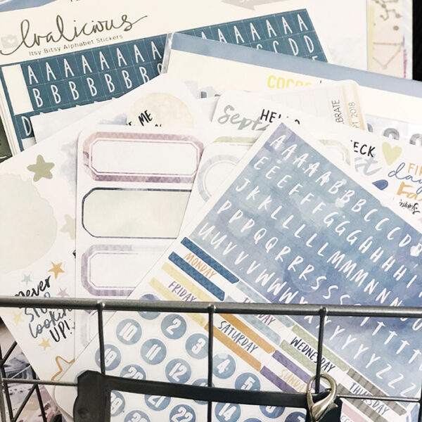 I like to store my product in ascending size order to make it easier to see, so next usually comes all the adorable sticker sheets and alpha sheets from the kits.