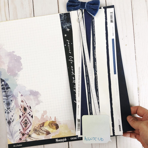 Because I document all month long with a story journal, CD kits are often on my desk for 2-3 months at a time, which means MULTIPLE CD kits are on my desk at one time! Eeek! So early on, I was very concerned as to how I would store these kits in the short term to make them easy to access (if it’s not on my desk, I’m not using it!) but still organized in a manner that doesn’t make my desktop a mess forever.