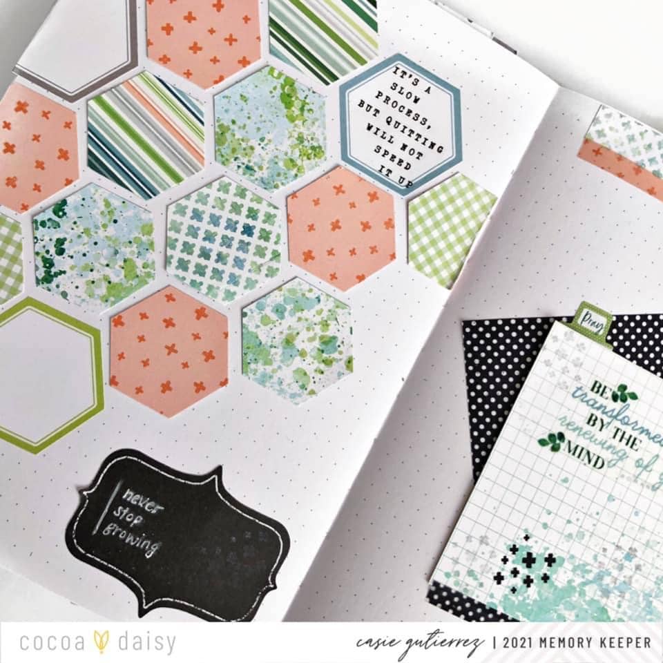 Enter a repeating shape pattern & voila! Hexagons on the left side of the notebook showcase all the beautiful pattern papers.